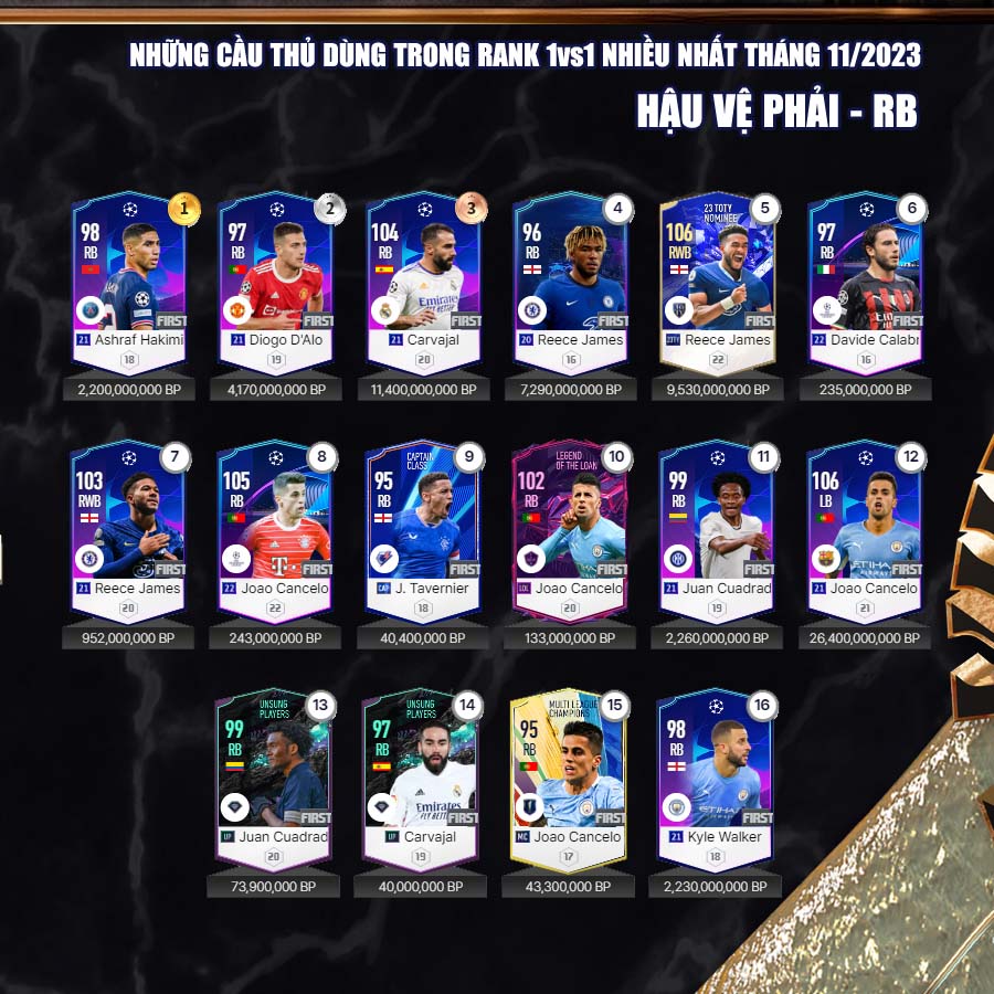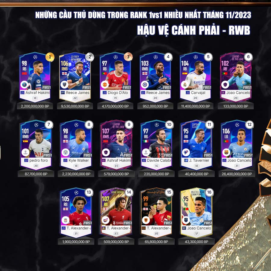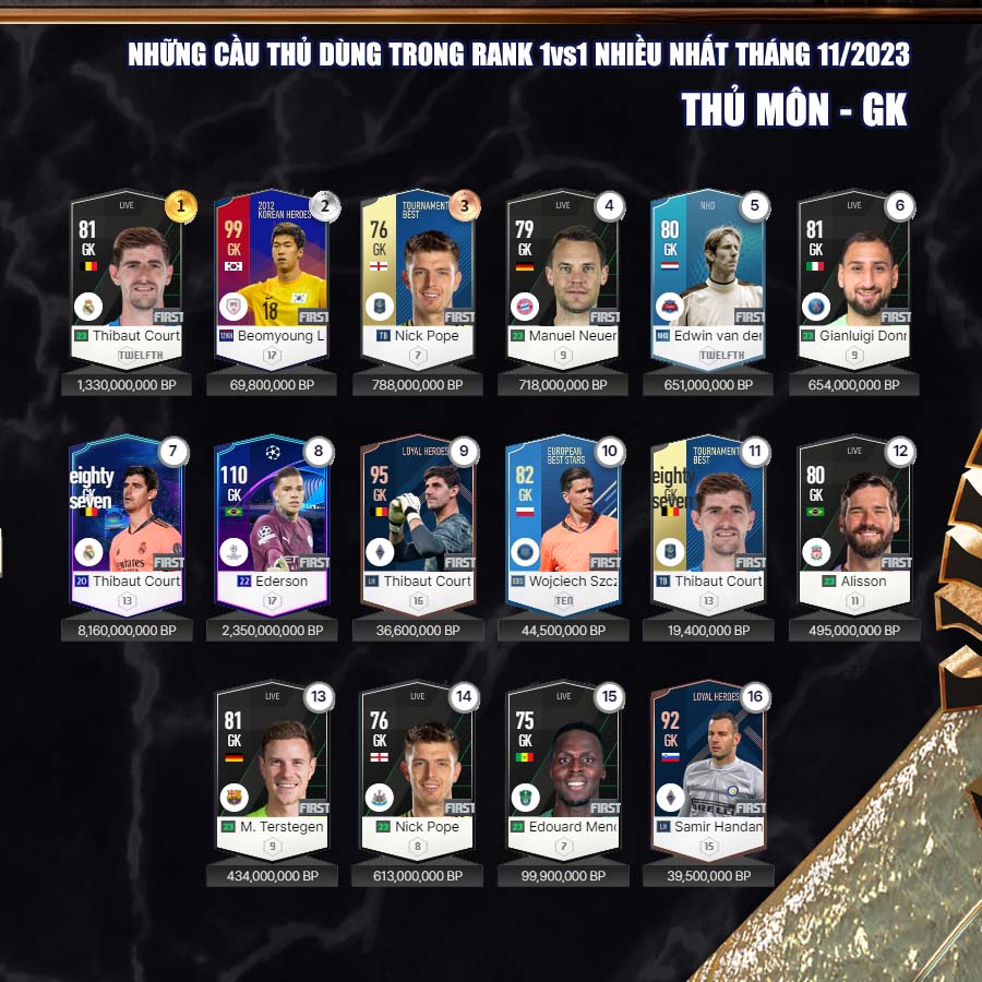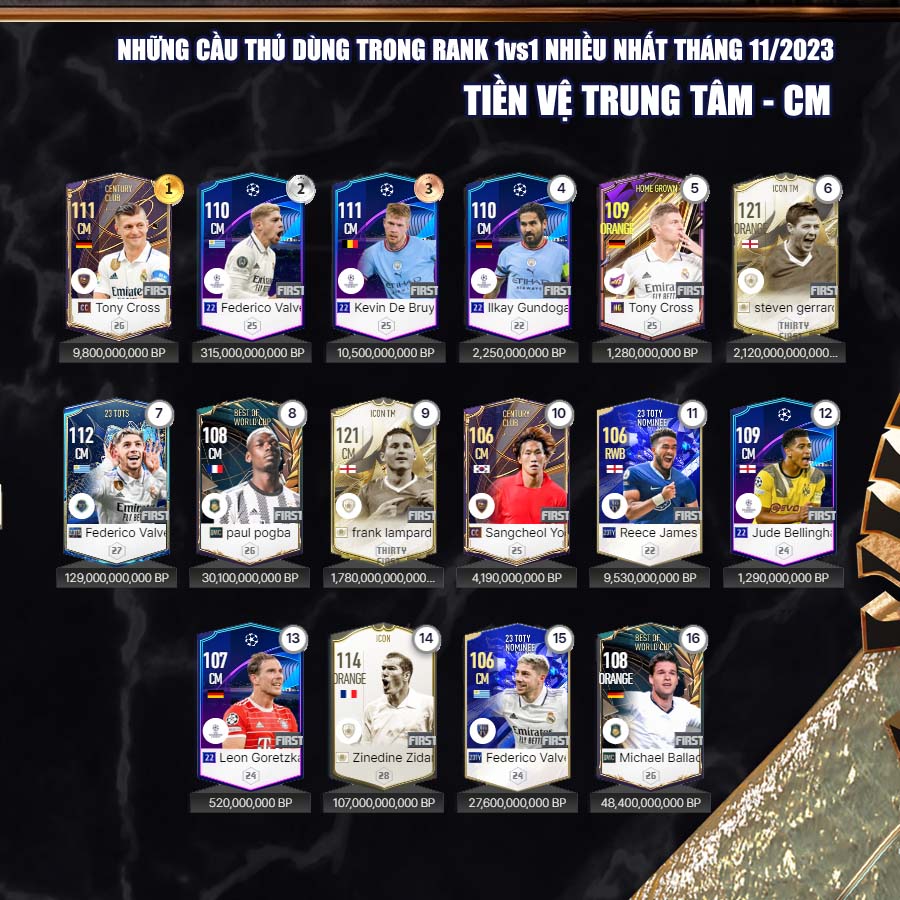 Tháng 11 không có nhiều sự thay đổi trong cách dùng cầu thủ của đa phần HLV do việc chỉnh gameplay diễn ra vào cuối tháng. Tuy nhiên tháng 11 cũng chứng kiến sự bứt phá của mùa giải Centuri Club, với những cầu thủ rất chất lượng, đặc biệt là Cristiano Ronaldo CC.
