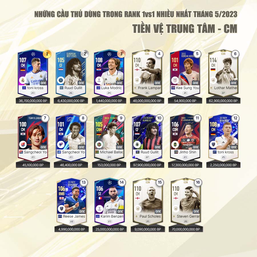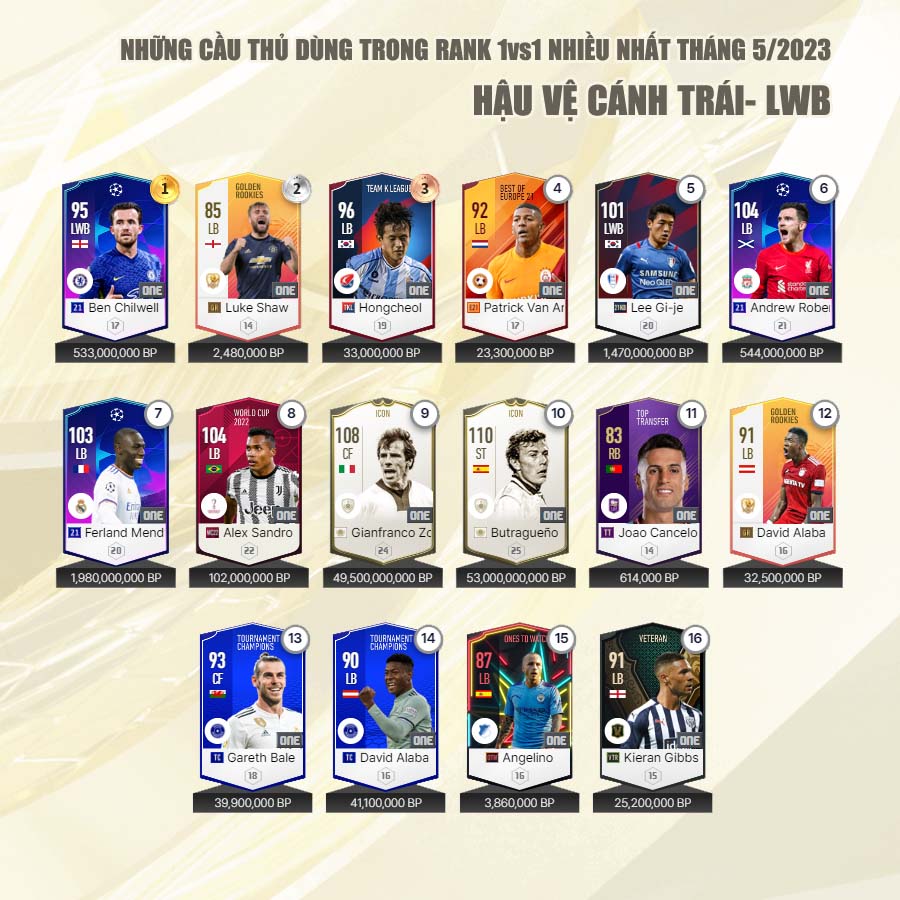 Các hậu vệ cánh có mức lương 15-16 bỗng dưng hot trở lại để gánh lương cho các cầu thủ tấn công với mức ovr cực cao của ICON TM. Đáng chú ý các bạn có thể thấy là hai huyền thoại Zola và Butragueno cũng được các game thủ Hàn kéo ra đá LWB, RWB. Việc tận dụng các cầu thủ có khả năng tấn công tốt vượt trội đưa về vị trí này sau đó gắn cho skill xâm nhập để tạo đột biến trong các sơ đồ 5 hậu vệ không phải là mới. Nhưng có lẽ đây là lần đầu thấy hai tiền đạo được kéo về như vậy.