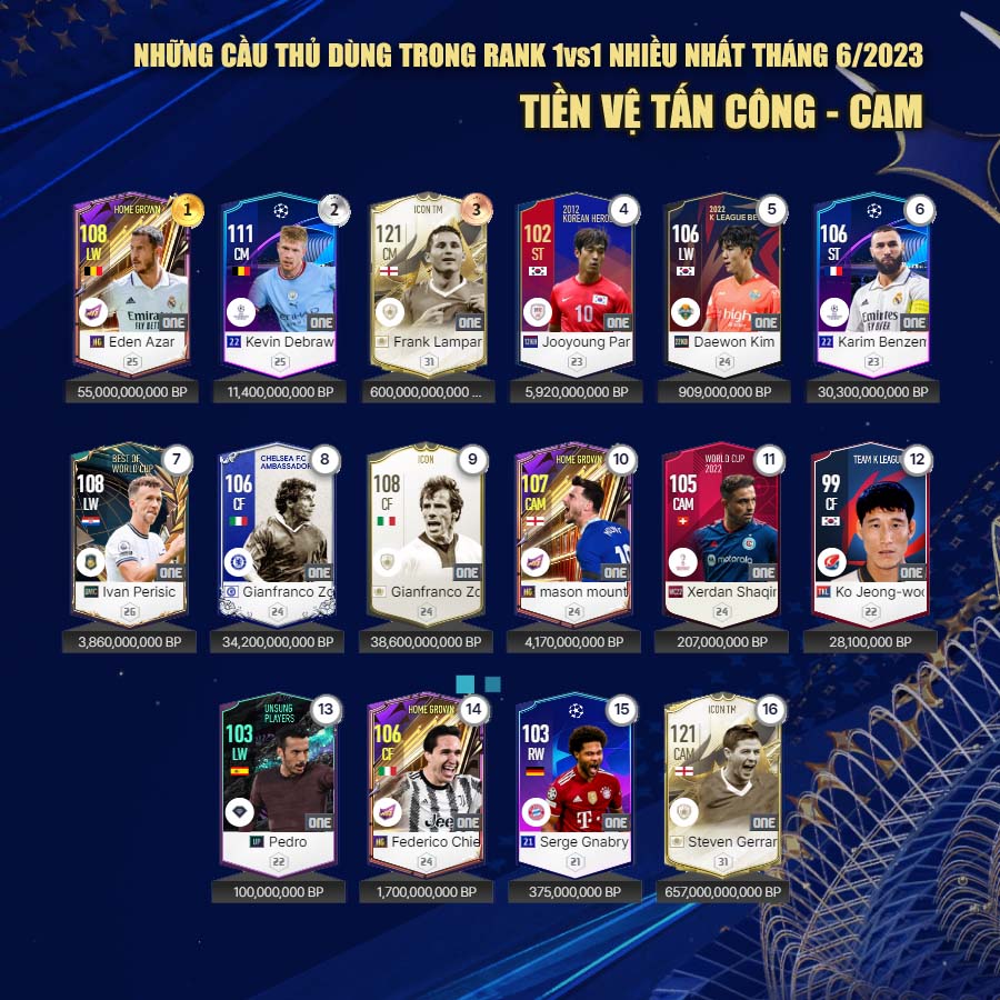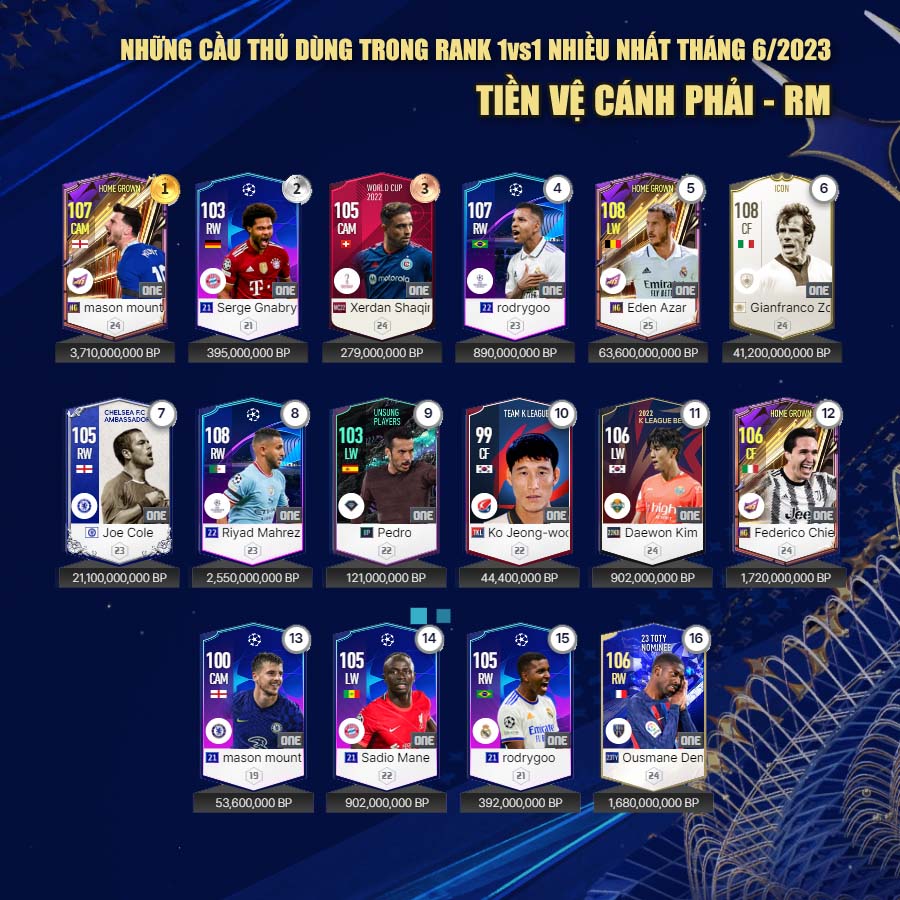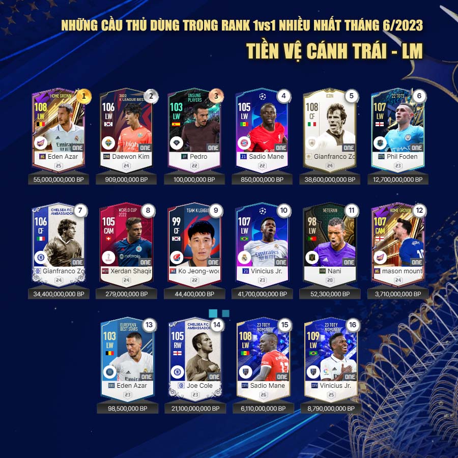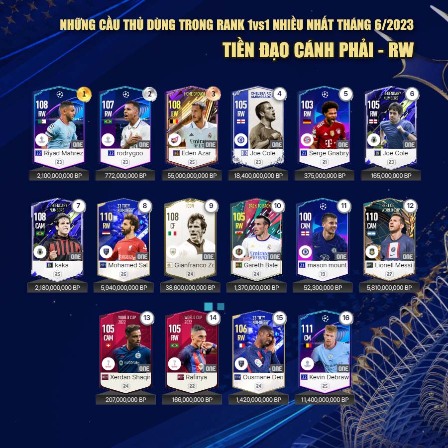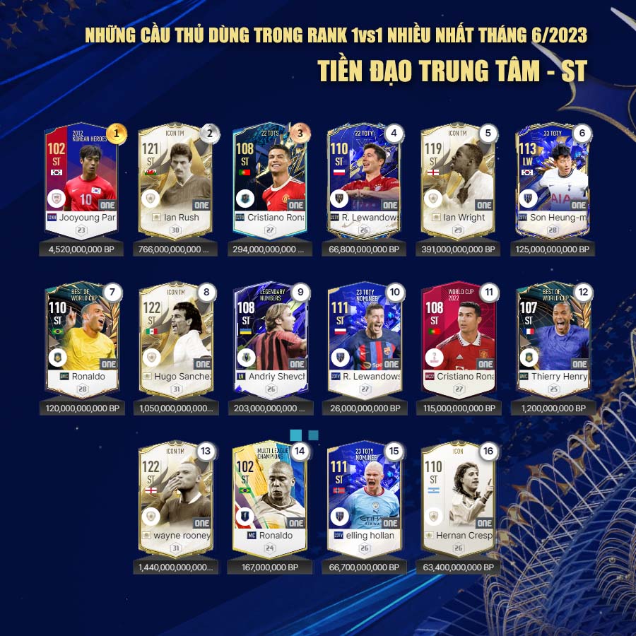 Đầu tiên có thể thấy rõ nhất ở vị trí tiền đạo cắm, khi ở các tháng trước, thậm chí là cả năm 2022 chúng ta gần như mất vắng bóng các ICON, nhưng giờ đây các ICON TM và ICON đã trở lại và thực sự tạo ra sự khác biệt so với phần còn lại. Tất nhiên Ronaldo, Lewandowski vẫn có chỗ đứng trước sự độ bộ ồ ạt của các cầu thủ mới.