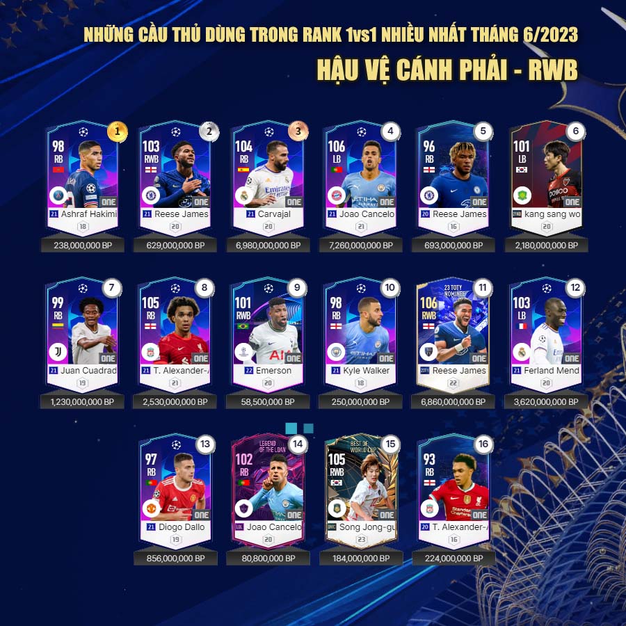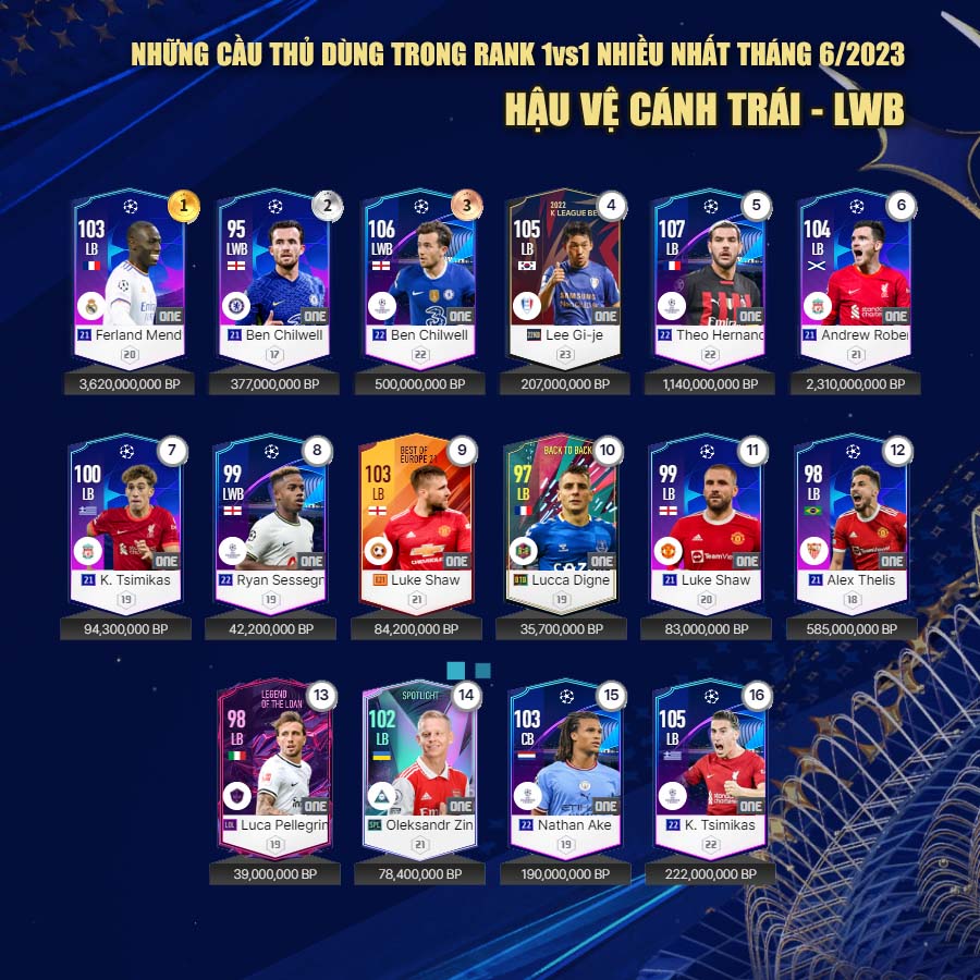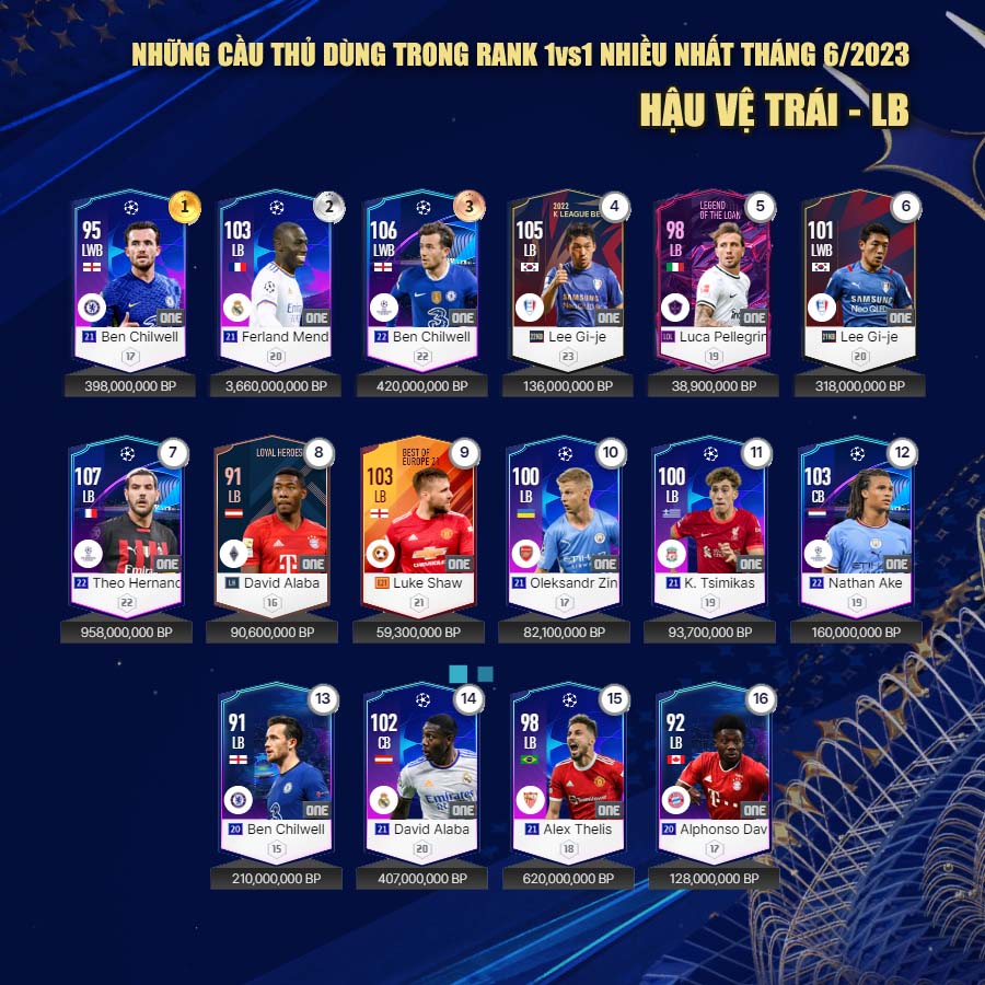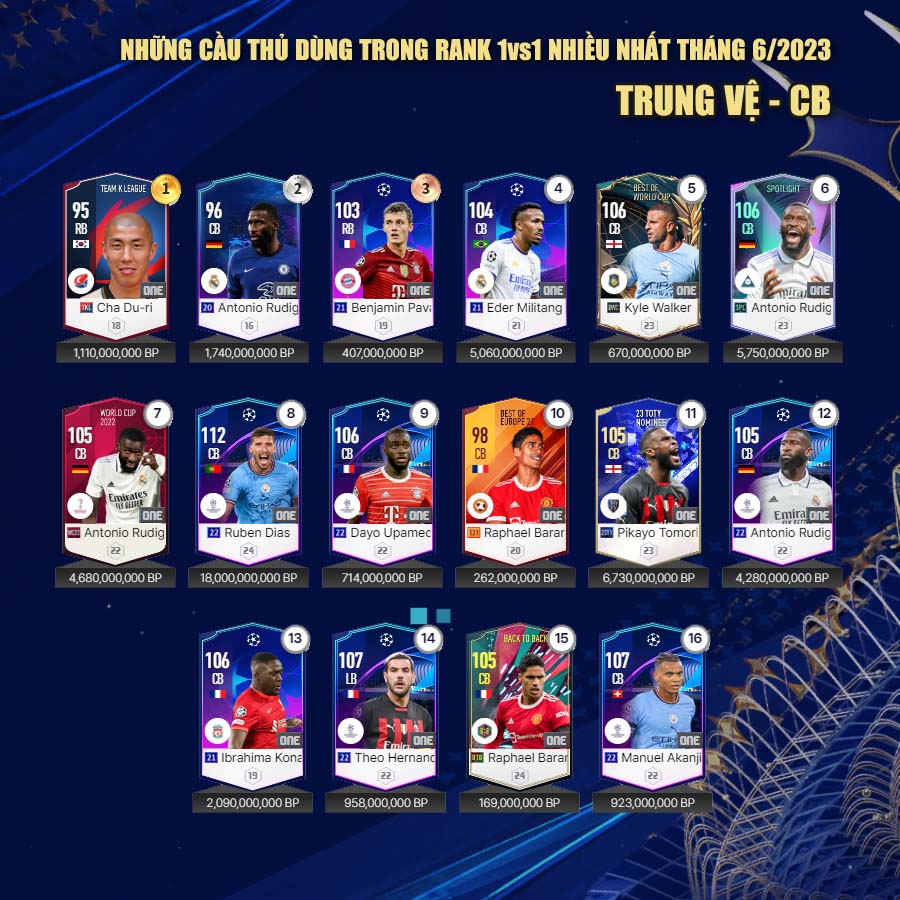 Nhưng trái lại thì ở vị trí trung vệ, việc nâng cấp AI của các cầu thủ phòng ngự, đặc biệt là khu vực vòng cấm đã khiến các HLV sẵn sàng sử dụng các cầu thủ có mức lương thấp để dồn lương cho vị trí hàng công. Chúng ta thấy rằng tỷ lệ sử dụng Rudiger 20UCL tăng vọt, tất nhiên Nexon không thích điều này, bởi không ai lại thích người dùng chỉ thích dùng các sản phẩm xưa cũ khi mà hàng loạt cầu thủ mới ngày càng được tung ra nhanh hơn. Việc thay đổi đội hình liên tục mới chính là biện pháp làm giàu cho nhà phát hành.