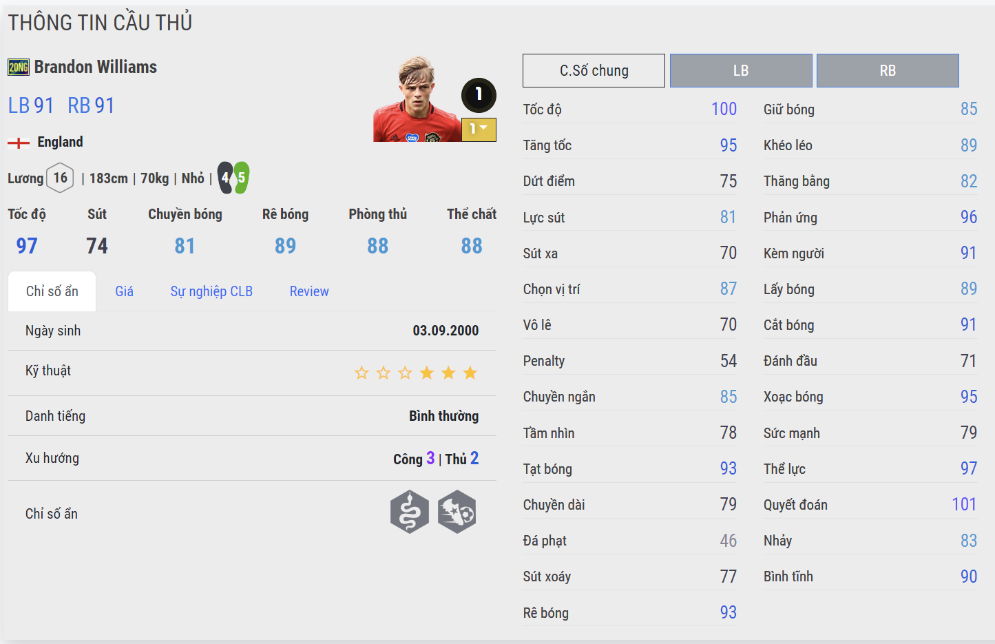 Cầu thủ chạy cánh của MU được xem như một vị trí cân lương vô cùng hiệu quả trong thời gian qua bởi lối chơi đa năng, thi đấu toàn diện được ở cả 2 cánh, tốc độ tốt và đặc biệt là khả năng phòng ngự lẫn hỗ trợ tấn công đều rất ổn ở mức thẻ cộng cao.