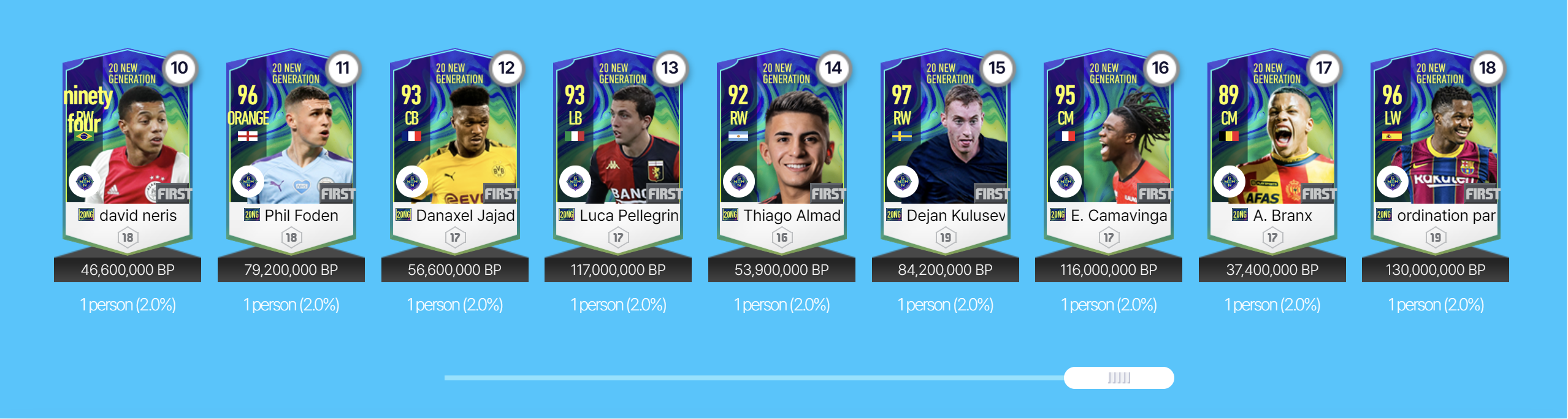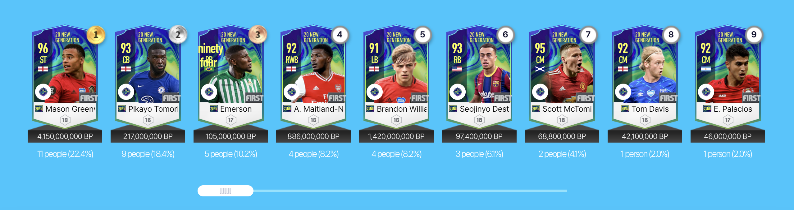 Tuy vậy, theo thời gian và sự hiện diện của nhiều mùa thẻ mới có giá trị sử dụng cao hơn, mùa thẻ 20 New Generation dần trôi về dĩ vãng và ít người chơi còn muốn sử dụng mùa thẻ này. Điều này khiến ít nhiều các HLV bỏ quên một vài tài năng vẫn còn rất hữu dụng của mùa thẻ này.