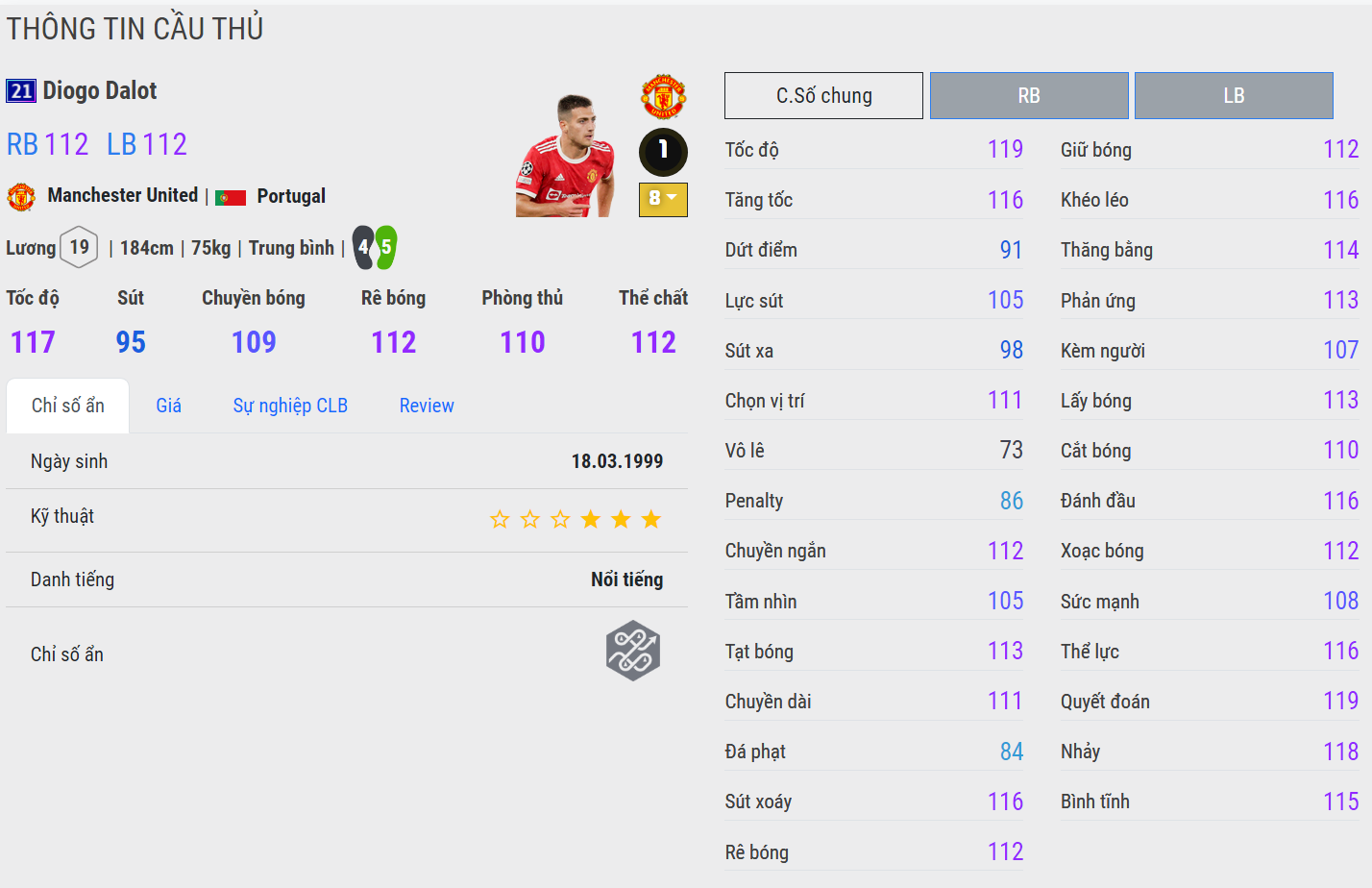 Hậu vệ cánh phải của Man Utd là một trong những cái tên rất đáng quan tâm ở vị trí hậu vệ phải. Có cho mình 2 team color rất mạnh là AC Milan và Man Utd. Dalot là mẫu hậu vệ biên nhanh, có sức tì đè tốt, kỹ năng phòng ngự chắc chắn và rất chủ động trong các tình huống đánh chặn với đối phương.