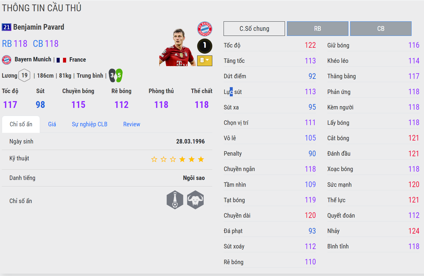 Thể hình và chiều cao tốt cùng khả năng thi đấu đa dạng ở cả hành lang biên cho tới trung vệ. Pavard là một trong những trung vệ khá uy tín cho ĐT Pháp và Bayern Munich. Tốc độ tốt, kỹ năng phòng ngự ổn, sải chân dài giúp những cú tắc bóng có độ chính xác cao và hiệu quả hơn rất nhiều. Ngoài ra khả năng không chiến của Pavard cũng là rất tốt. Anh là một hậu vệ mùa 21UCL rất có giá trị sử dụng.