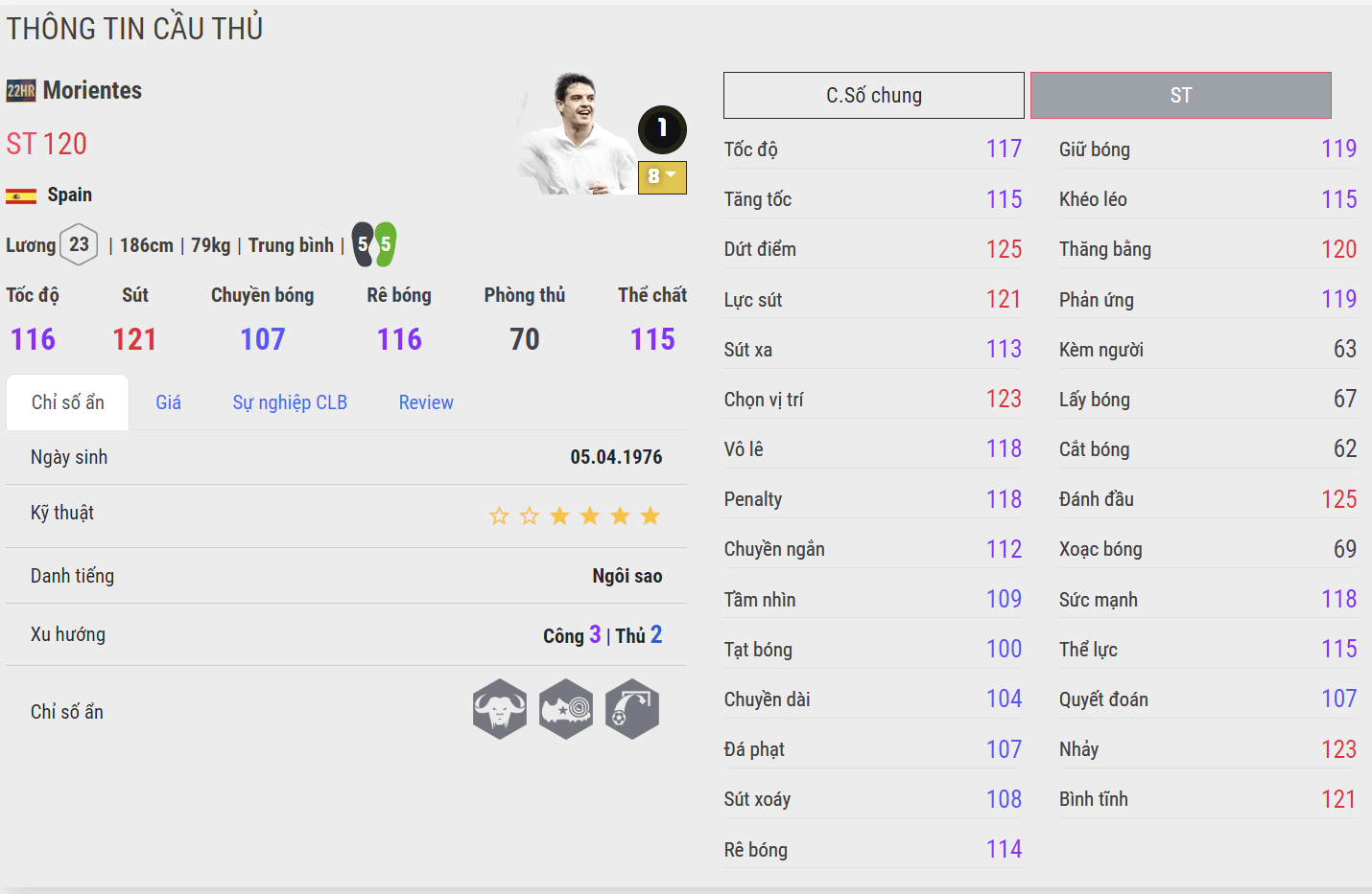 Sở hữu trong mình 2 team color cực hot là Liverpool và Real Madrid, Morientes là cái tên tiếp theo được đánh giá rất cao trong danh sách 22HR. Sở hữu kỹ năng săn bàn thượng thừa trong khu vực cấm địa cùng khả năng dứt điểm tốt bằng cả 2 chân. Morientes còn cho thấy anh đa năng trong khâu ghi bàn ở cả những tình huống không chiến bởi khả năng chọn vị trí và đánh đầu rất tốt. Điểm yếu của cầu thủ người TBN nằm ở tốc độ không quá nổi bật và khả năng tì đè hơi thiếu ổn định.