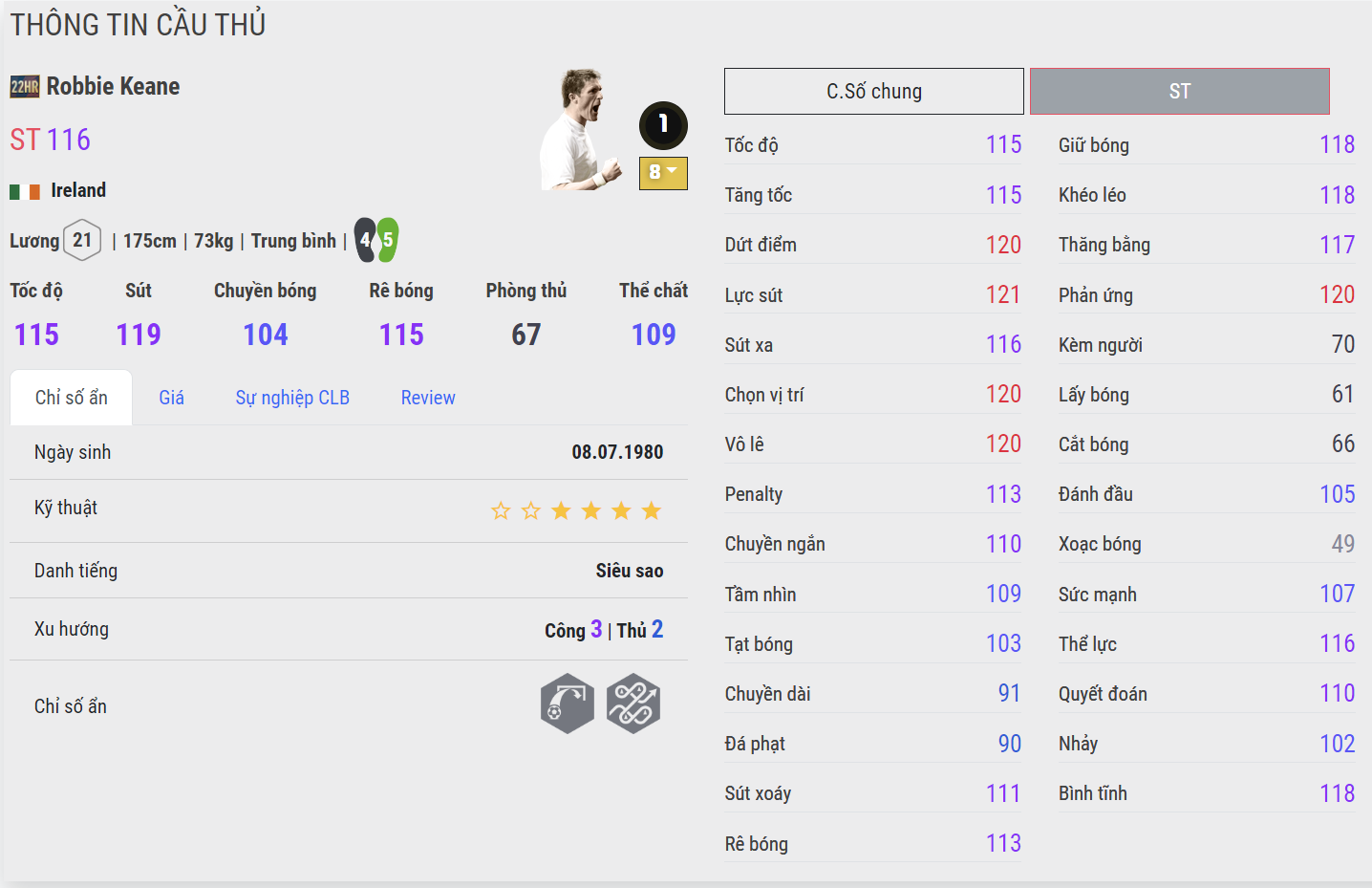 Không sở hữu những kỹ năng quá nổi bật nhưng Robbie Keane lại được người Hàn đánh giá rất cao ở vị trí tiền đạo cho team color Tottenham bởi AI có phần nhanh nhạy, khả năng chọn vị trí và dứt điểm rất tốt. Không những thế khả năng xoay sở trong phạm vi hẹp tốt cũng giúp R. Keane hiệu quả trong khu vực vòng cấm đến bất ngờ.