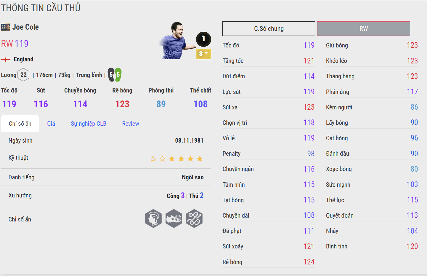 Cole vốn luôn được coi là cầu thủ quốc dân cho vai trò chạy cánh của team color Chelsea, Liverpool cũng như ĐT Anh. Trước đó mùa giải CFA là lí do khiến mùa 22HR dần đi vào quên lãng nhưng với sự trở lại của phiên bản cộng 8. J. Cole 22HR sẽ được tin dùng nhiều hơn và là cái tên hot trong thời gian sắp tới.