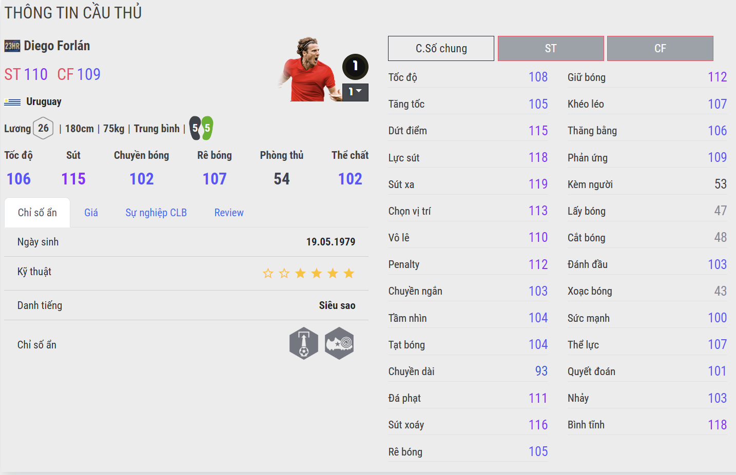 Tiền đạo người Uruguay được xem là một trong những cầu thủ cực kì đáng dùng thời điểm hiện tại. Sở hữu kỹ năng dứt điểm toàn diện từ sút cận thành, sút xa, ZD đều đem lại hiệu quả cao ở cả 2 chân. Khả năng chuyền bóng của Forlan cũng là rất ổn khi anh được kéo xuống vị trí hộ công cùng với tốc độ đủ dùng khiến cho Forlan là cái tên toàn diện ở vị trí tiền đạo cả CF lẫn ST.