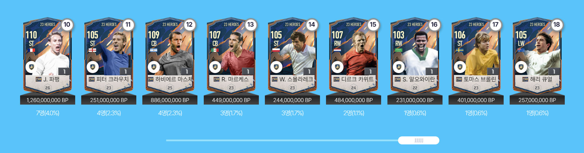 Thẻ mùa giải 23HR, hay còn được gọi là Heroes quy tụ những cầu thủ đã từng thi đấu thăng hoa trong vài mùa giải, vài trận đấu hay thậm chí chỉ là một khoảnh khắc, nhưng dấu ấn mà họ để lại là vô cùng lớn lao. Họ là vị cứu tinh mỗi khi đội bóng cần và người hâm mộ yêu quý gọi họ với biệt danh là Siêu Anh Hùng.