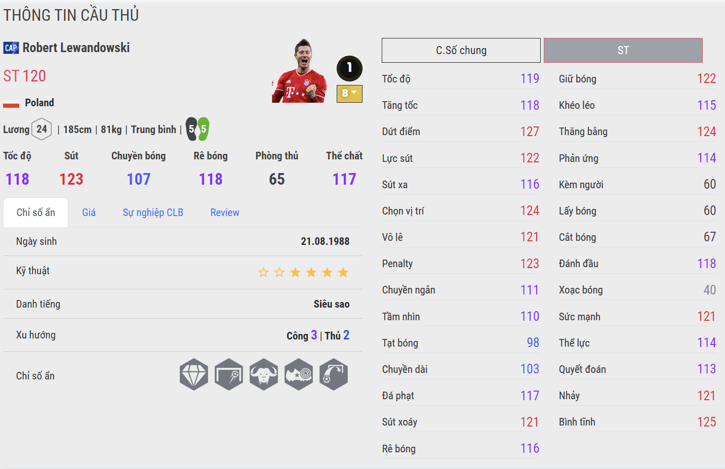 Tiền đạo người Ba lan là một trong những tiền đạo có lối chơi toàn diện nhất mùa CAP. Ở phiên bản này, Lewandowski vẫn giữ được tốc độ tốt, kỹ năng săn bàn hiệu quả và đa dạng cùng với khả năng sút tốt bằng cả 2 chân. Từ kỹ năng sút xa, ZD cho đến không chiến đều được Lewy thực hiện rất tốt. Cùng khả năng chọn vị trí và chạy chỗ khôn, Lewan vẫn là tiền đạo đáng dùng mùa CAP.