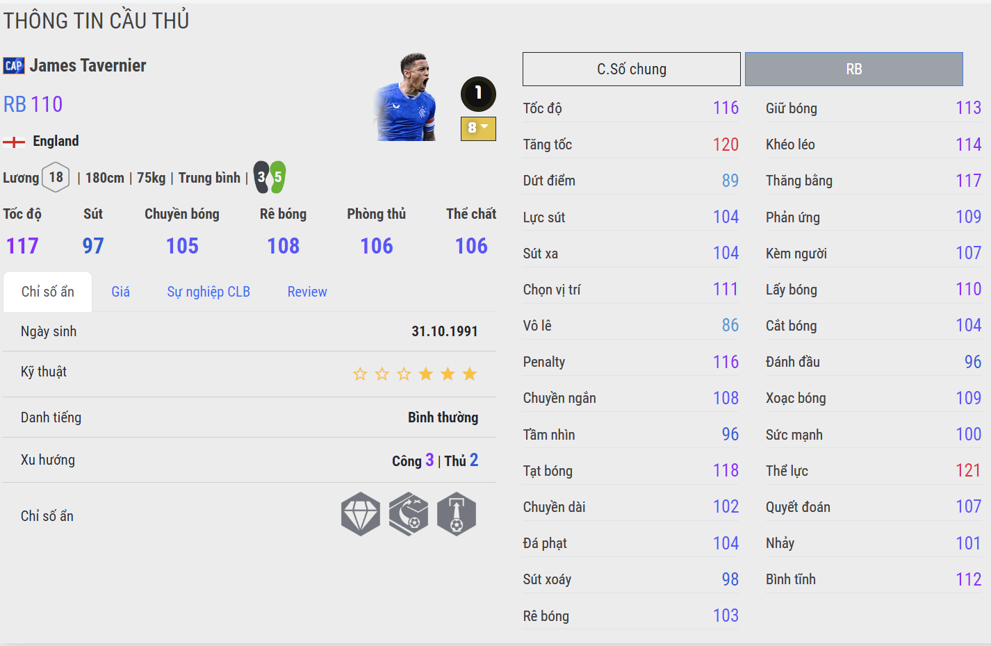 Hậu vệ phải mùa CAP là hiện tượng của mùa thẻ này ở vị trí phòng ngự. Sở hữu tốc độ tốt, thể hình đầm chắc, kỹ năng sút xa ổn cùng khả năng tạt bóng cực kì xuất sắc khiến cho việc tham gia tấn công với Tavernier là rất hay. Không chỉ có vậy, khả năng chuyền, ban bật ở biên cùng thể lực dồi dào giúp cho Tavernier có thể lên công về thủ đều đặn mà không sợ hao hụt thể lực.