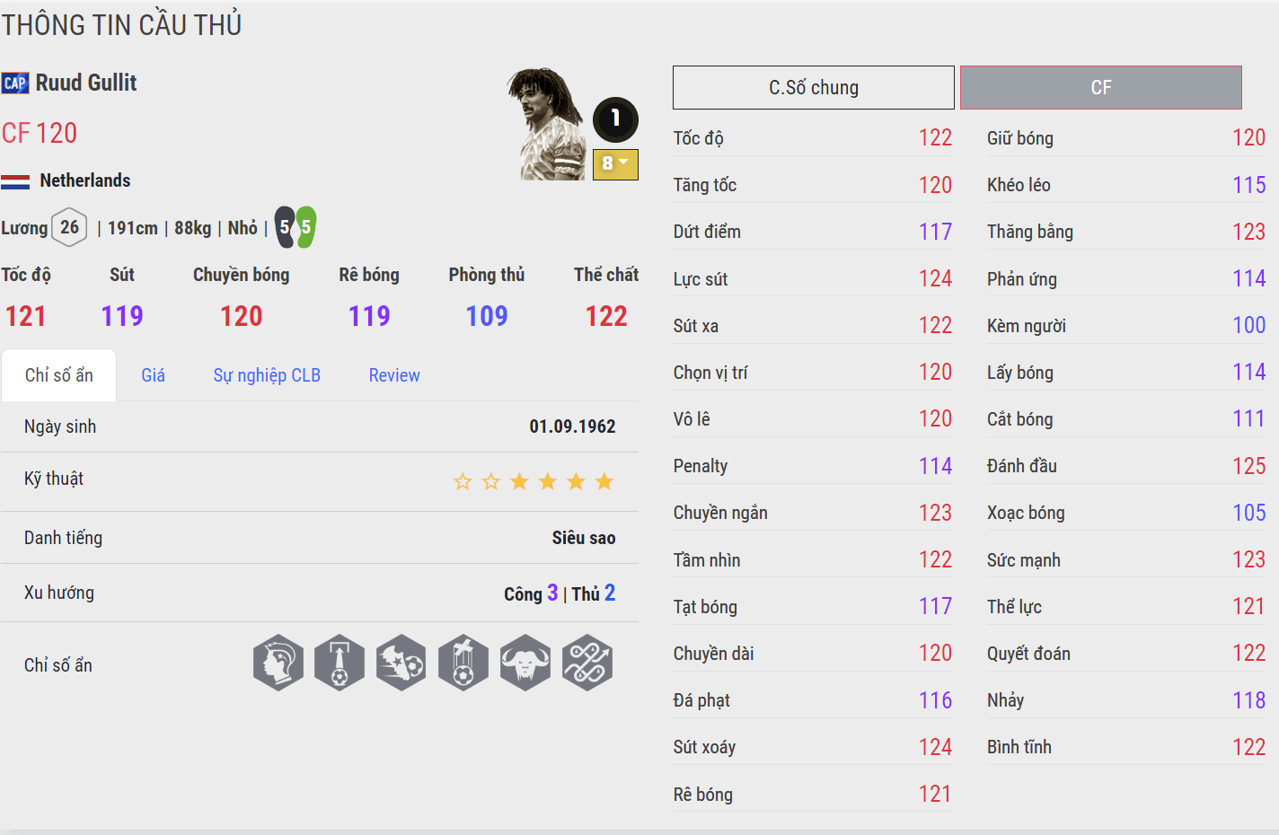 Không cần phải nói quá nhiều về Gullit khi anh được xem là mẫu cầu thủ toàn diện bậc nhất game. Gullit toàn diện ở mặt trận tấn công khi vừa có thể ghi bàn, vừa có thể kiến tạo tốt. Khả năng bao quát trận đấu tốt, sức tì đè khỏe và khả năng hỗ trợ phòng ngự cũng rất hiệu quả khiến anh gần như phù hợp ở mọi loại sơ đồ khác nhau.