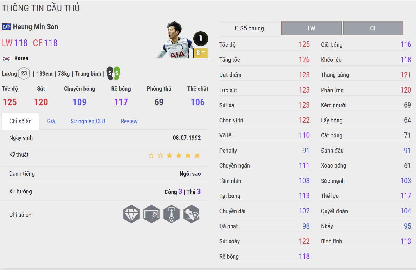 Son Heung Min là cái tên có giá trị sử dụng tốt nhất của CAP. Cầu thủ người Hàn có thể chơi tốt ở vị trí tiền đạo, hộ công cho đến chạy cánh với AI rất khôn và khả năng thi đấu toàn diện từ chuyền bóng, sút bóng cho đến hỗ trợ phối hợp. Son Heung Min còn là cái tên đánh thuê hiệu quả cho một số team color bị thọt vị trí chạy cánh hoặc có những cầu thủ chạy cánh không mấy chất lượng.