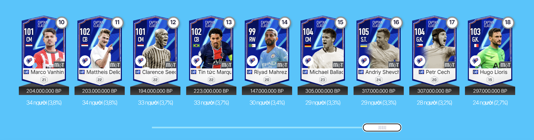 Lần đầu tiên, những chiến binh Cờ đỏ sao vàng cùng đồng hành với những huyền thoại của bóng đá thế giới trong mùa thẻ Captain Players. Có tới 4 cái tên được góp mặt trong mùa thẻ này bao gồm: Quế Ngọc Hải, Quang Hải, Anh Đức và Công Phượng, họ sẽ cùng nhau viết tiếp câu chuyện của riêng mình để tiếp tục khẳng định sức mạnh bóng đá nước nhà.