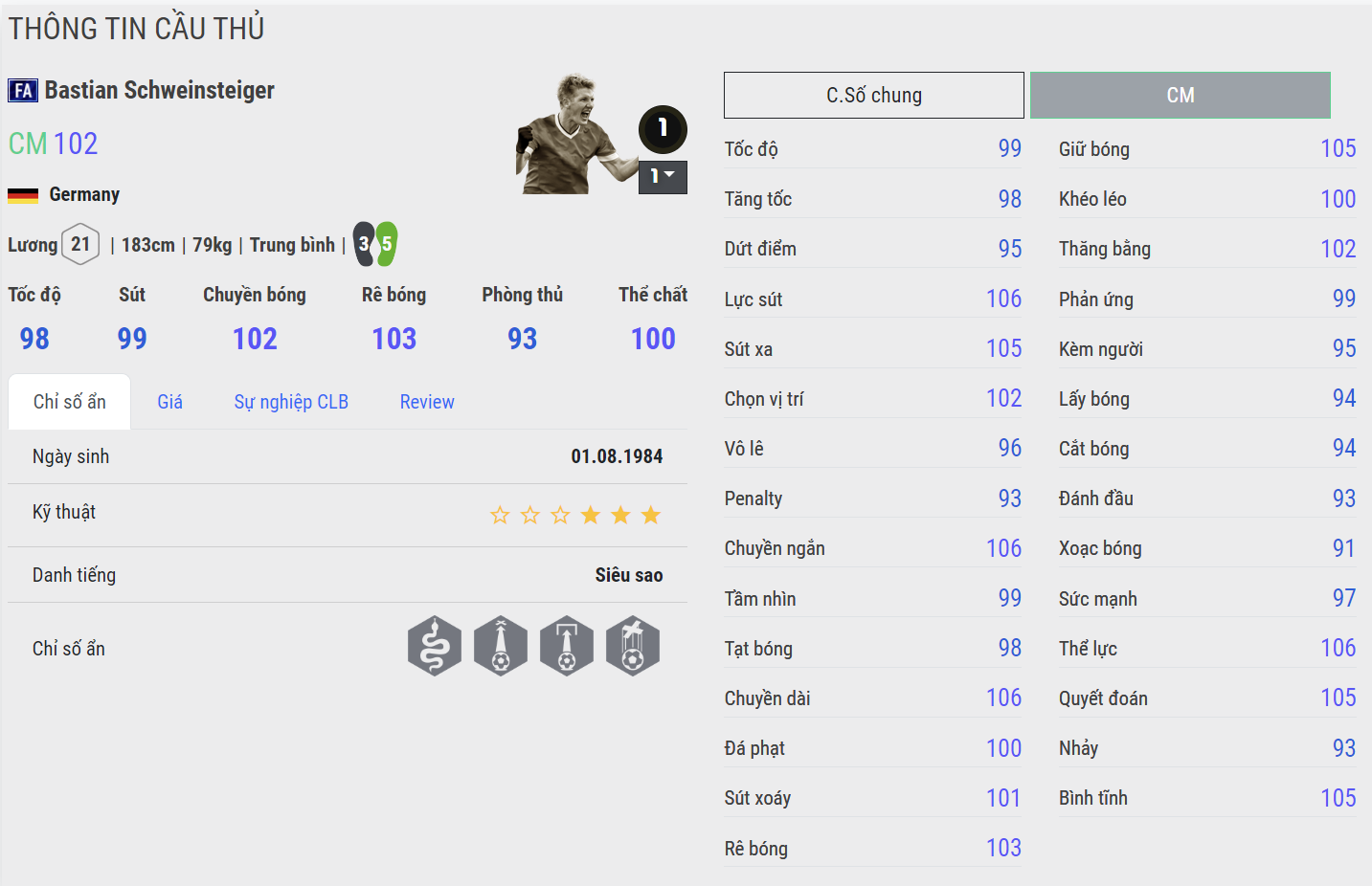 Đây có lẽ là mùa thẻ mà team color Đức giành được nhiều lợi thế khi có tới 3 cầu thủ đều rất hay ở vị trí CDM. Schweinsteiger tiếp tục là một CDM chất lượng với lối chơi toàn diện cả về kỹ năng tấn công lẫn phòng ngự. Điều khiến Schweinsteiger trở nên đáng dùng chính là ở khả năng sút xa cực kì chính xác và khả năng chuyền dài cũng nhu chọc khe ZW, QW đều trở nên vô cùng ấn tượng.