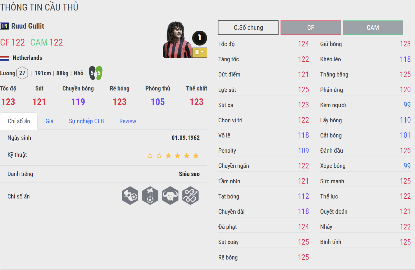 Gullit là cái tên tiếp theo góp mặt trong danh sách này. Tiền đạo người Hà Lan được xem là một trong những cái tên toàn diện và đáng dùng bậc nhất FC Online. Từ tốc độ, khả năng dứt điểm tốt cả 2 chân, kỹ năng không chiến, tranh chấp, chuyền bóng cho đến hỗ trợ phòng ngự đều rất ổn. Điều này khiến Gullit toàn diện trong hầu hết các vị trí trên sân từ tiền đạo cắm, tiền vệ công cho đến tiền vệ trung tâm. Sở hữu team color AC Milan, Chelsea và Hà Lan khiến cho tỉ lệ sử dụng Gullit tăng rất cao.
