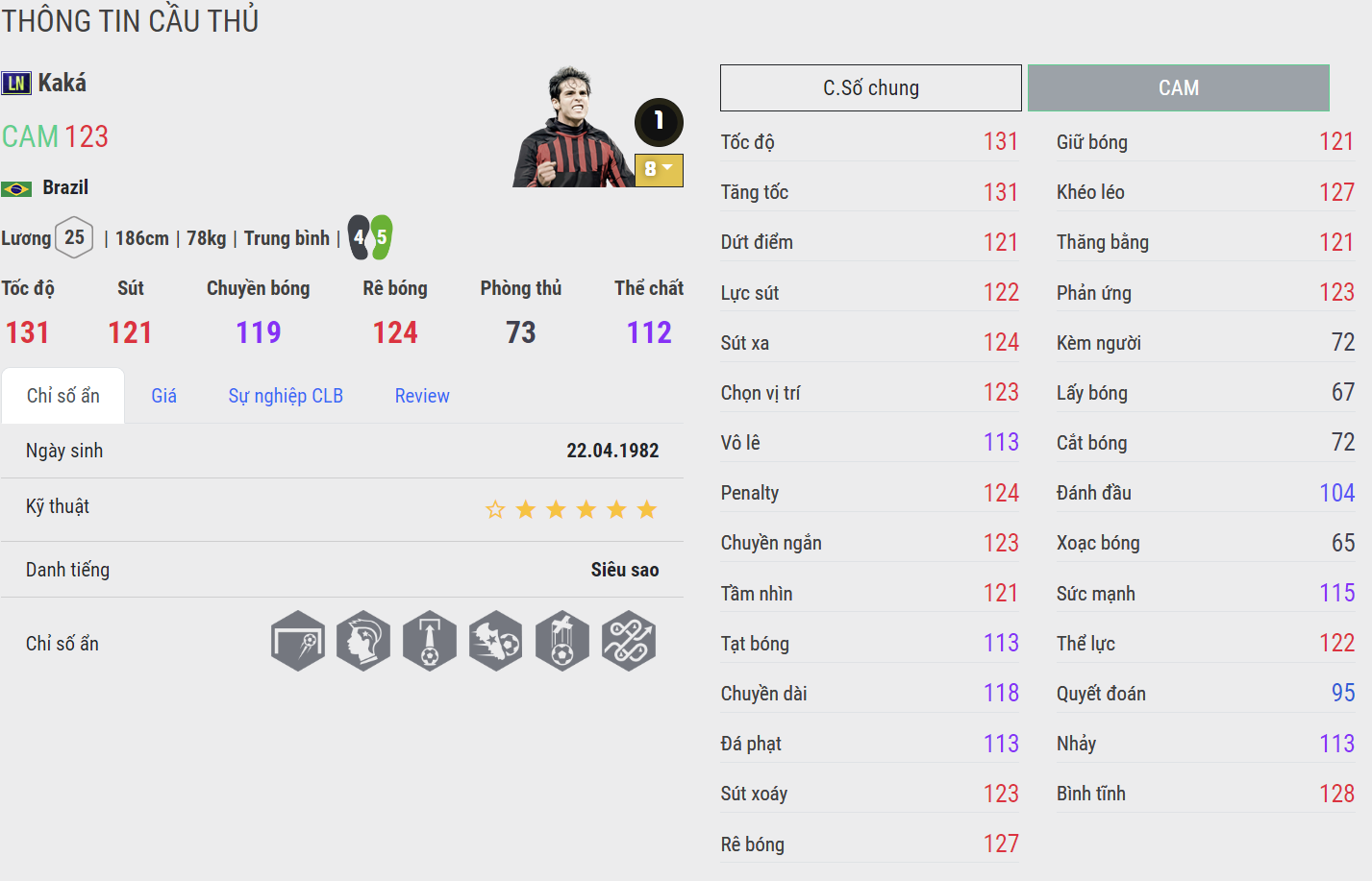 Kaka LN hiện vẫn đang được xem là cầu thủ quốc dân ở vị trí hành lang cánh. Dù có vị trí thi đấu chính ở khu vực trung tâm nhưng đa phần các HLV đều thích kéo Kaka ra biên để tận dụng khả năng bứt tốc xé gió cùng kỹ năng xử lý bóng, chuyền bóng rất ổn định. Phiên bản LN được đánh giá cao một phần là bởi sự cải thiện về khả năng tạt bóng giúp Kaka dần hoàn thiện khi thi đấu ở hành lang biên.