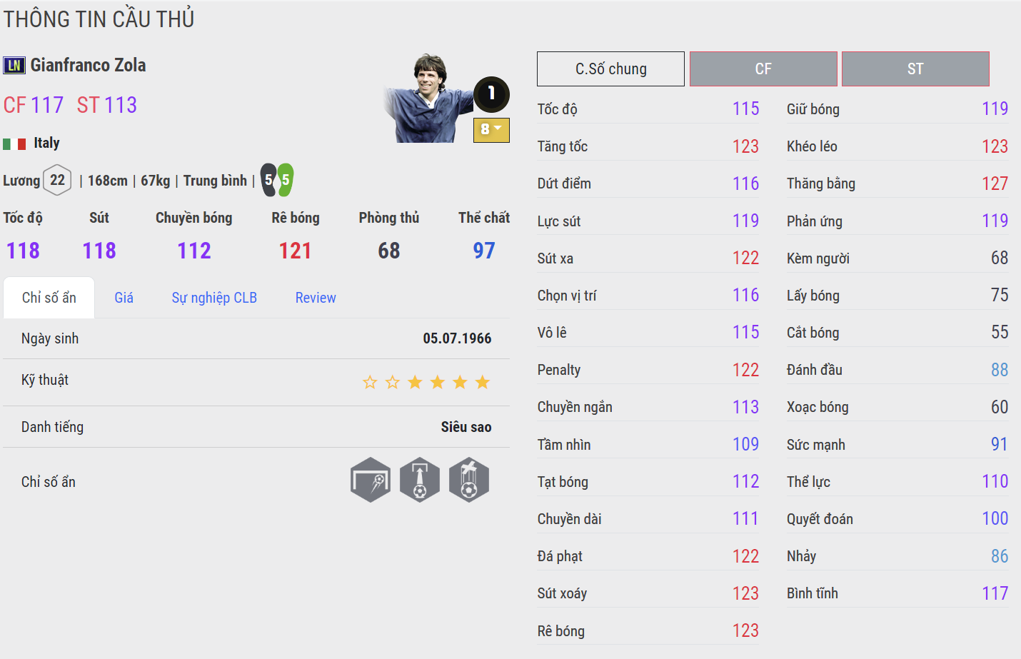Nhiều HLV sẽ cảm thấy bất ngờ nhưng Zola LN thực sự là một quân bài mạnh cho vị trí chạy cánh của team color Chelsea hoặc Italy. Tiền đạo người Ý rất dẻo trong các tình huống xử lý bóng, khả năng rê dắt cực tốt cùng bộ chỉ số dứt điểm cũng như độ hiệu quả không thua kém bất cứ cái tên quốc dân nào. Zola được đánh giá là cầu thủ có phong cách thi đấu lột xác sau khi meta mới ra mắt và dần chiếm lĩnh vị trí chạy cánh vốn rất chật chội của team color Chelsea.