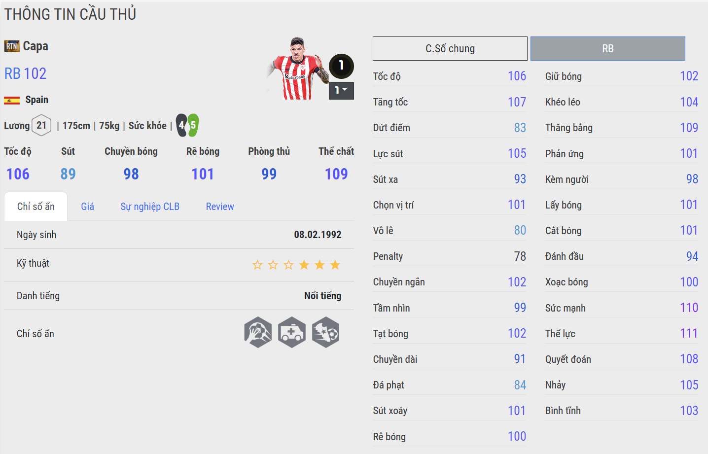 Capa là vị trí hậu vệ phải đang được nhiều HLV sử dụng ở mùa RTN. Sở hữu tốc độ rất tốt, khả năng đua tốc hiệu quả dù có thể hình to đầm. Sở hữu kỹ năng chuyền bóng , tạt bóng rất hay cùng khả năng chuyền bóng phối hợp tốt. Thăng bằng cao giúp cho Capa rất lì đòn trong các tình huống tranh chấp. Hậu vệ TBN có khả năng tranh chấp và cắt bóng rất hay, khả năng tắc bóng tốt cũng giúp cho Capa hiệu quả ở khâu phòng ngự.
