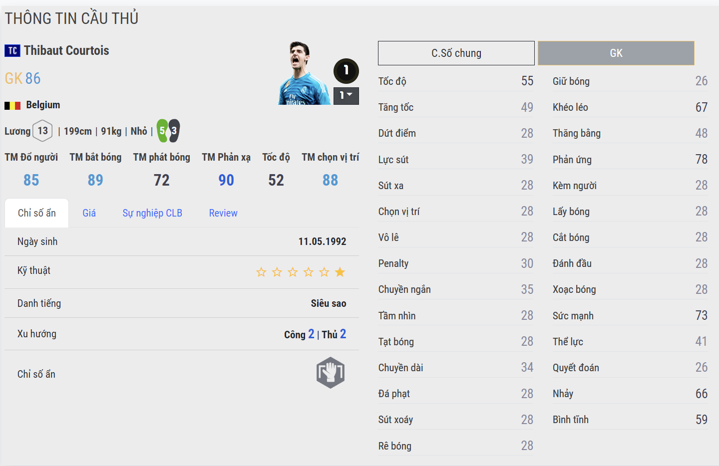 Courtois TC luôn được đánh giá cao trong hầu hết các phiên bản gameplay bởi sự hiệu quả. Mùa giải TC giống như một bản nâng cấp nhẹ cho mùa giải Live khi có bộ chỉ số khá ổn cùng mức lương mềm phù hợp với meta hiện tại.