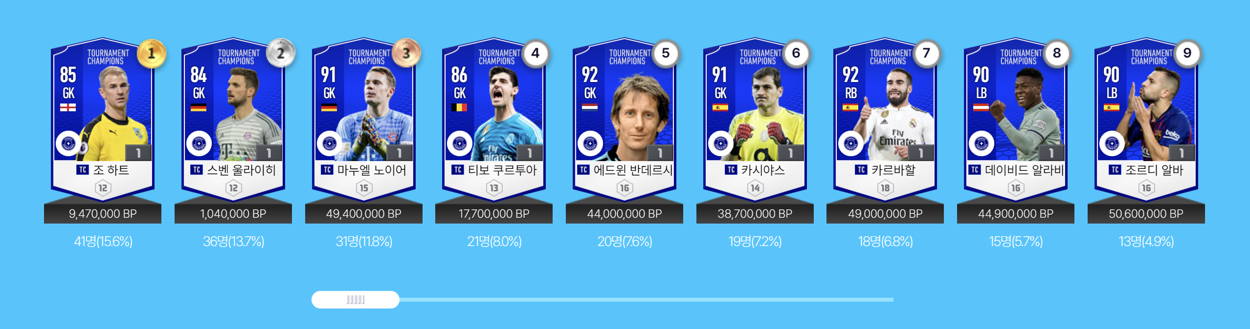 Tuy nhiên, mùa TC vẫn còn một số cầu thủ đáng dùng và giữ được AI phù hợp với hiện tại. Trong đó top 5 cầu thủ được tin tưởng nhất đều nằm ở vị trí thủ môn, một vị trí luôn được sử dụng để cân lương trong FC Online hiện tại.