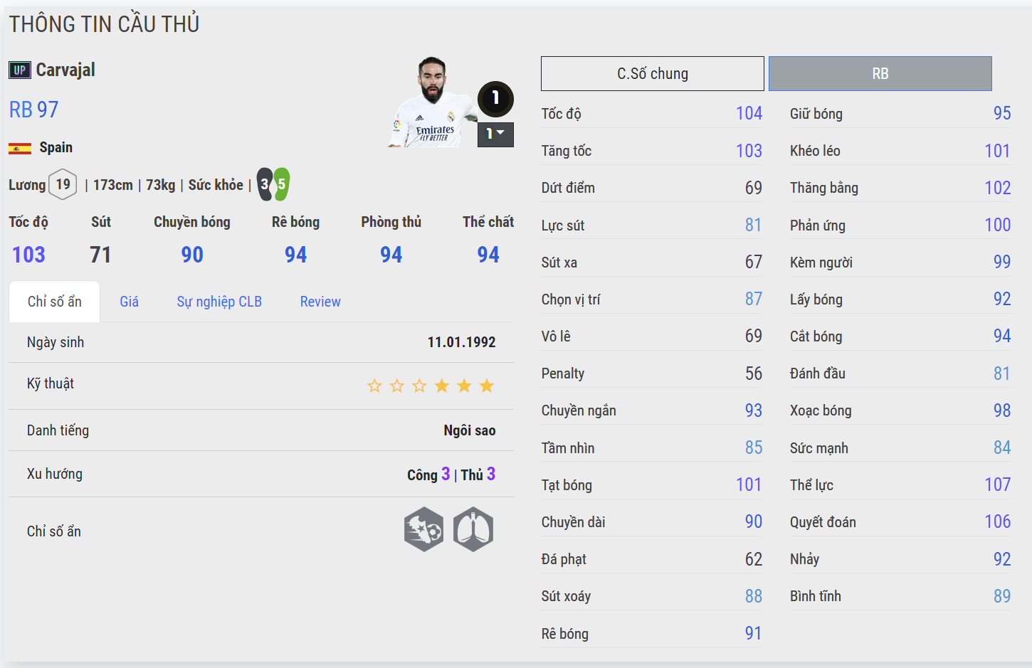 Cầu thủ chạy cánh là cái tên tiếp theo được nhắc đến bởi khả năng cân lương ổn và chắc chắn ở vị trí hậu vệ cánh. Lối chơi máu lửa, tốc độ nhanh và khả năng hỗ trợ tấn công không thua kém gì những tiền vệ cánh chính là điểm nổi bật mà Cavajal mùa UP sở hữu.