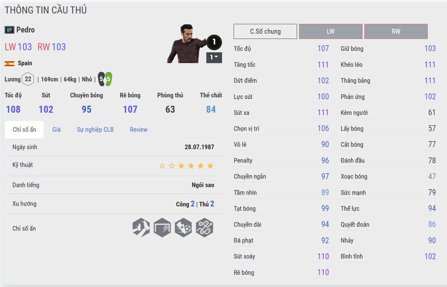 Cho đến thời điểm hiện tại thì Pedro vẫn là cầu thủ chạy cánh được tin dùng bậc nhất cho team color Chelsea và Barcelona. Pedro rê bóng dẻo, khả năng tạt bóng, chuyền bóng cực tốt bằng cả 2 chân cùng một lối chơi khéo léo phù hợp cho những HLV thích rê dắt kỹ thuật. Đây là mùa thẻ được người chơi Hàn Quốc tin tưởng sử dụng cho đến tận bây giờ.