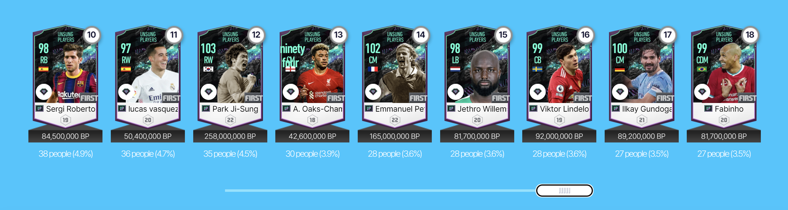 Mùa giải Unsung Player (UP) đã ra mắt được một khoảng thời gian khá dài và đang dần thụt lùi lại so với những mùa giải khác cả về chỉ số, độ hiệu quả lẫn AI trong game. Thay thế vào đó là hàng loạt những mùa thẻ mới với bộ chỉ số cao vút và dần đưa mùa UP vào quên lãng.