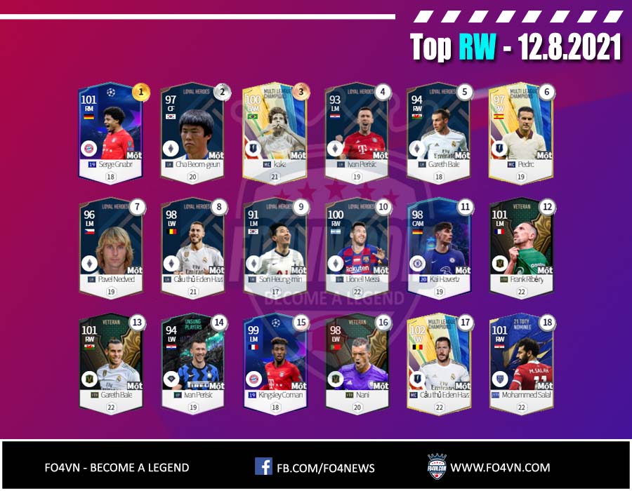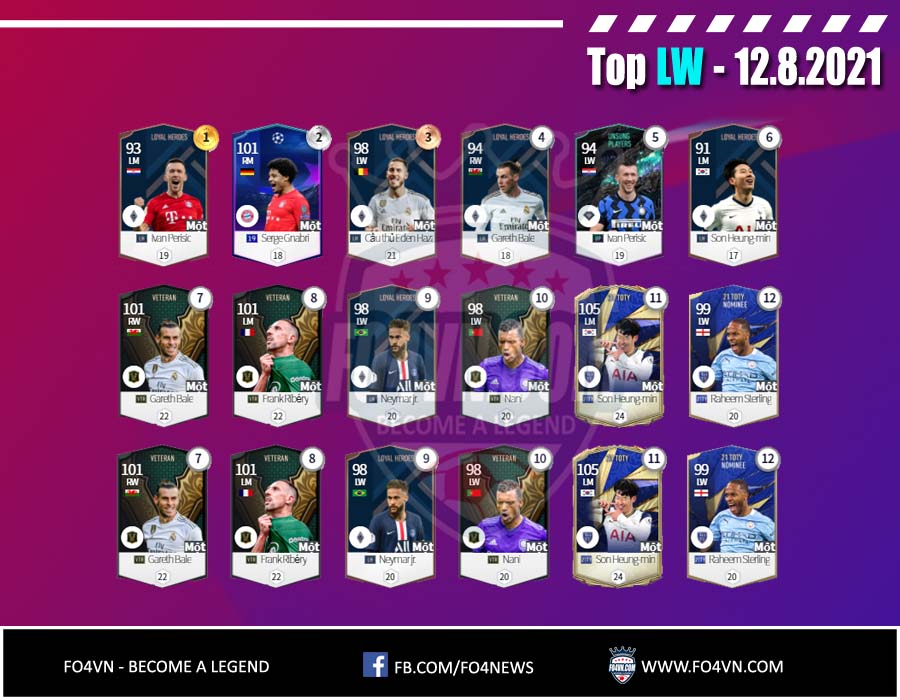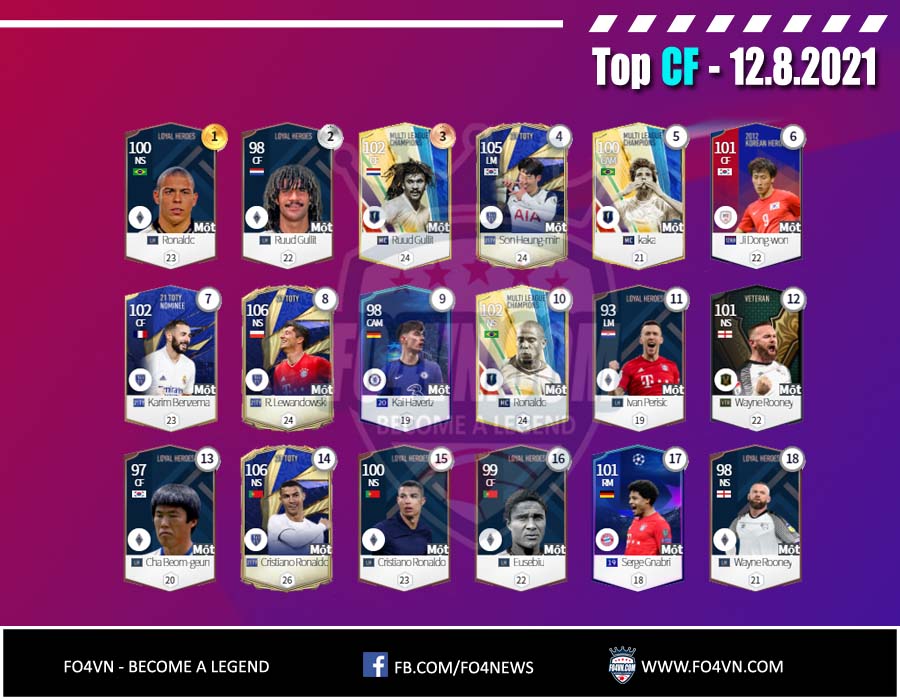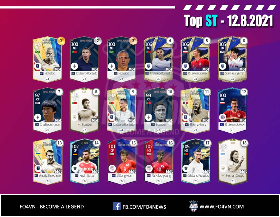 Fo4vn xin được gửi tới các bạn danh sách các cầu thủ từng vị trí được sử dụng nhiều nhất 28 ngày qua. Tính đến 12.8.2021 trong ranking 1vs1 Hàn Quốc. Danh sách này có thể thay đổi sau đó