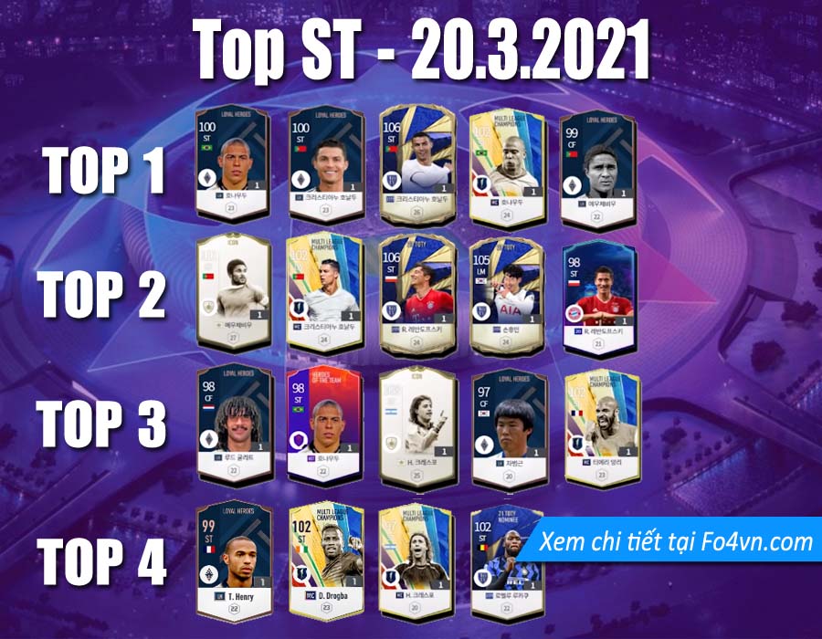 Sau gần một tháng, chúng ta quay trở lại bảng xếp hạng các tiền đạo được ưa chuộng nhất trong thời gian vừa qua. Tính đến 20.3.2021