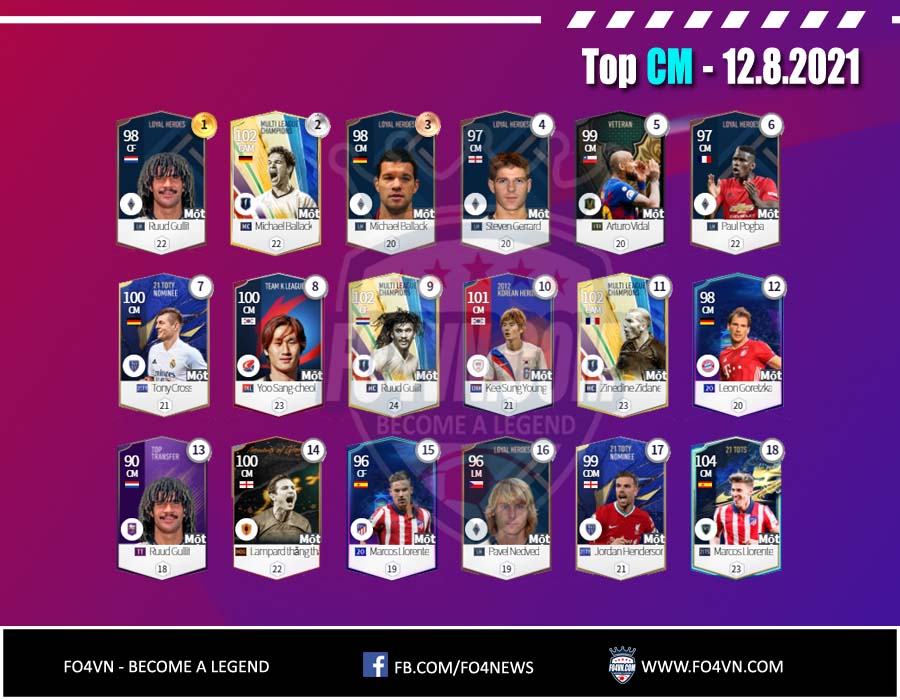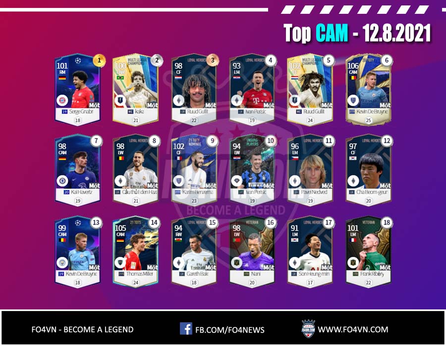 Top tiền vệ được sử dụng nhiều nhất - 12.8.2021