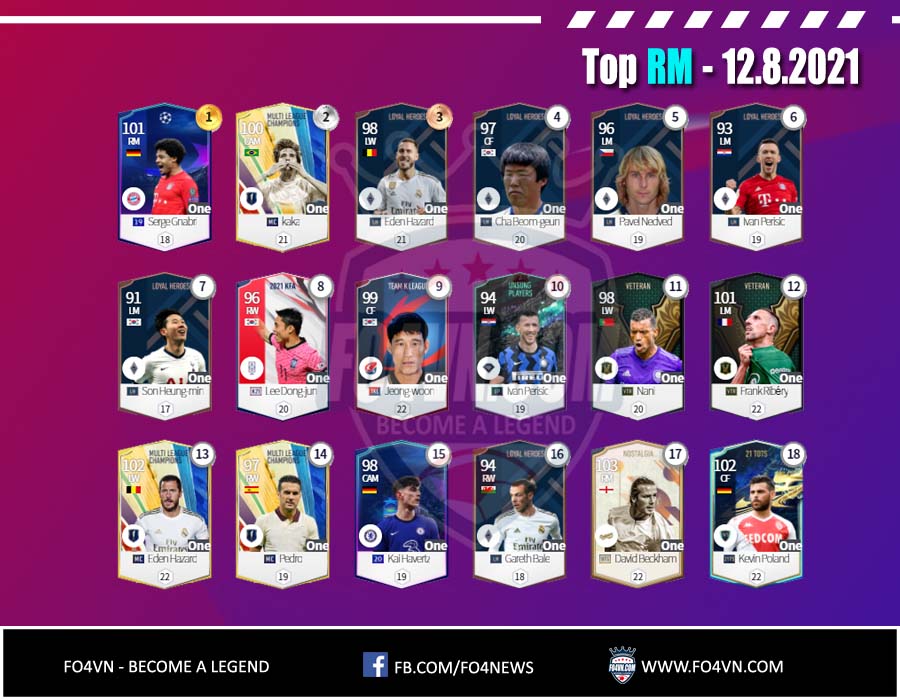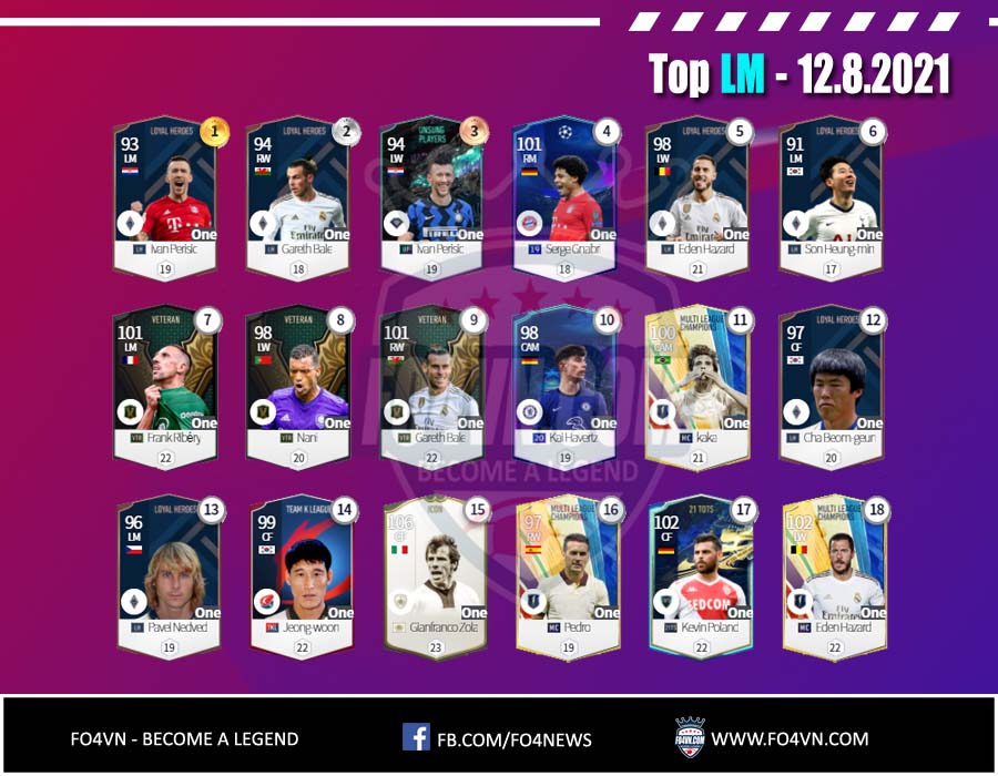 Fo4vn xin được gửi tới các bạn danh sách các cầu thủ từng vị trí được sử dụng nhiều nhất 28 ngày qua. Tính đến 12.8.2021 trong ranking 1vs1 Hàn Quốc. Danh sách này có thể thay đổi sau đó