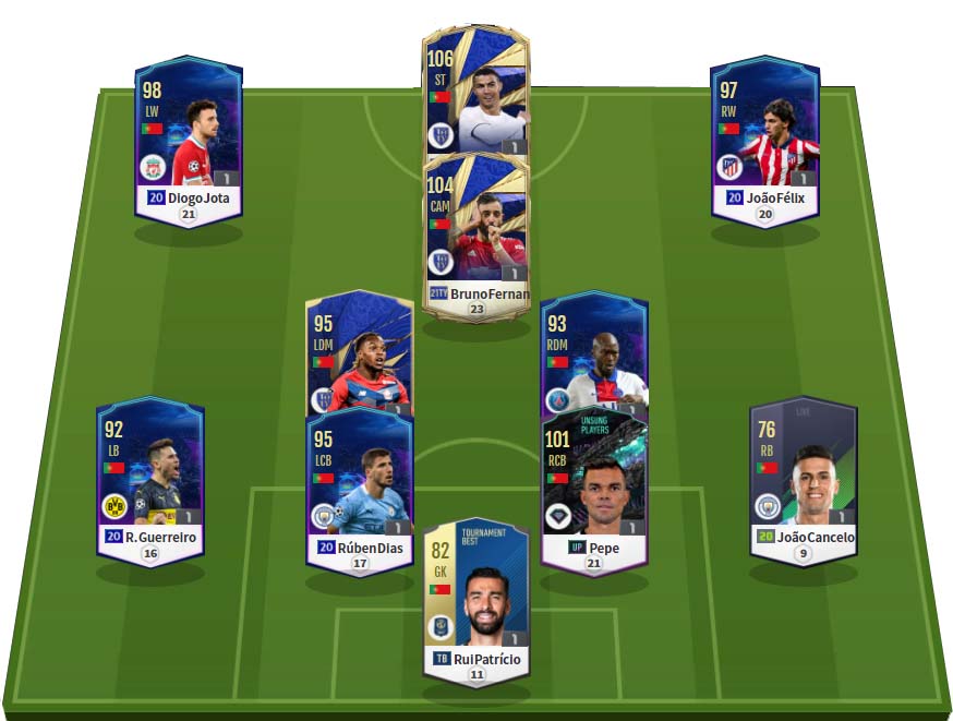 Hiện nay với việc có trong mình rất nhiều ngôi sao. Tuyển Bồ Đào Nha chính là một trong những đội bóng dễ xây dựng nhất, Khi mọi tuyến của Bồ đều cho thấy sự đồng đều trong các nhân tố. Một phiên bản Bồ Đào Nha với sự hoàn hảo hiếm có trong nhiều năm trở lại đây.