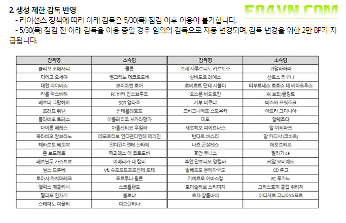 Vẫn dựa trên những chính sách liên quan đến bản quyền, một số HLV phía dưới cũng sẽ bị xóa bỏ và thay mới.