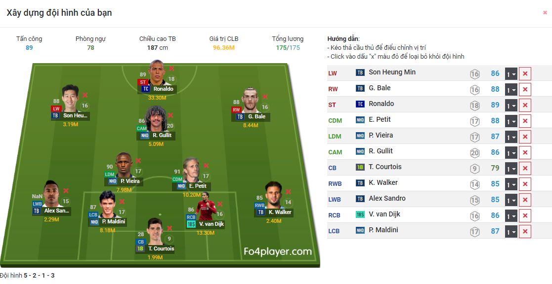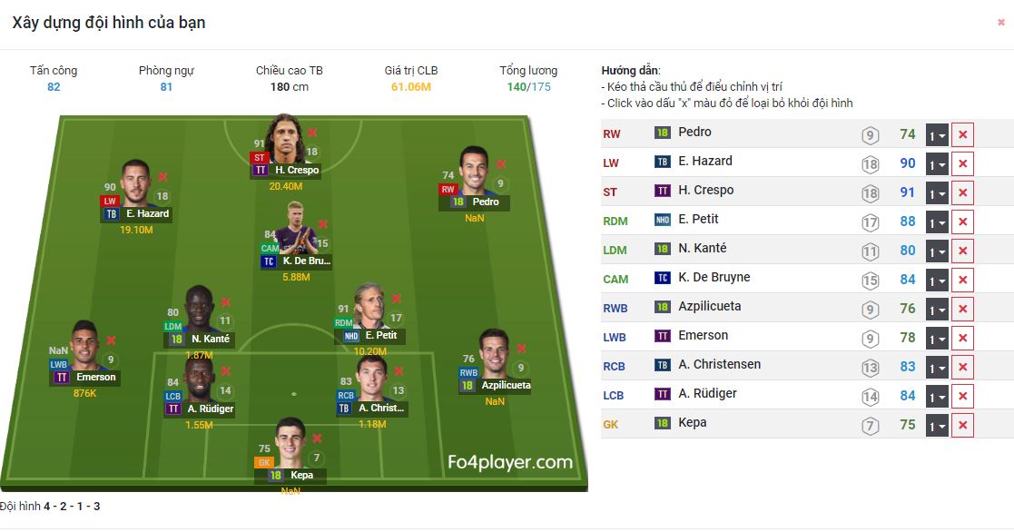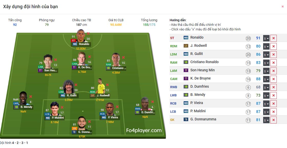 Dưới đây sẽ là một số độ hình được người chơi FIFA Online 4 xây dựng trên chính trang web FO4PLAYER.COM. Những đội hình này đã được chắt lọc và xem xét cả về mức lương, giá cả lẫn từng vị trí cụ thể trên sân.