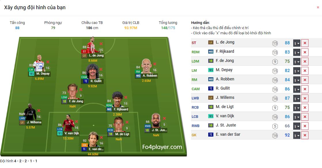 Hiện tại với việc Fo4player.com đã cập nhật giá cầu thủ theo sever Việt Nam và cập nhật 2-3 ngày một lần, điều này sẽ giúp cho người chơi có thể tìm kiếm cầu thủ theo mức giá cần có. Thêm vào đó tính toán được chi phí để xây đội hình, dù không nạp một xu nào vào game.Xây dựng đội hình