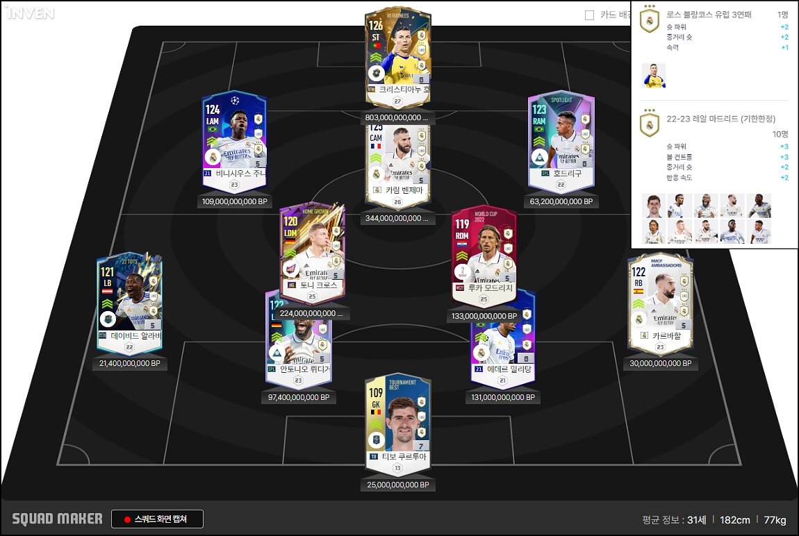 Sử dụng đội hình với những cầu thủ mùa giải cũ, giá thấp nhưng vẫn còn hiệu quả cao trong game. Lựa chọn team color đương đại để có thể kich thêm team color Real Madrid 22-23 nhằm tối ưu đội hình và tăng chất lượng AI của cầu thủ.