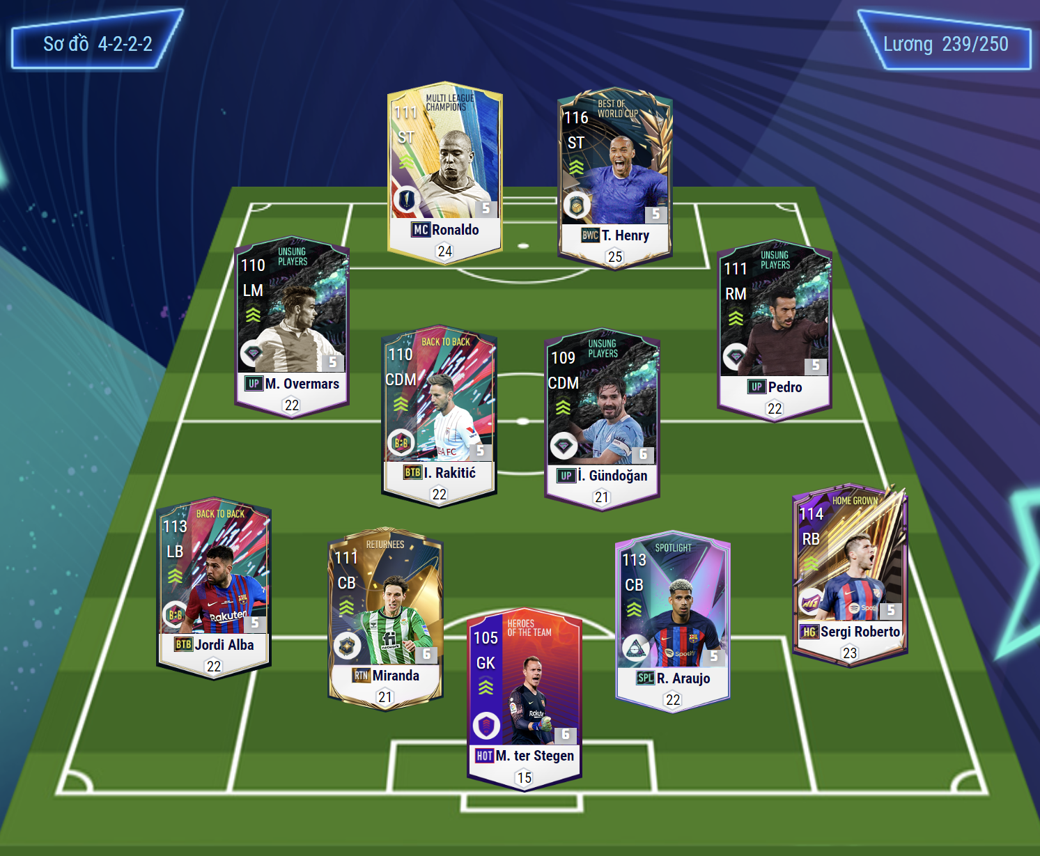 Vị trí tiền đạo nên được đầu tư bằng một cái tên chất lượng và Henry BWC sẽ là một lựa chọn cực kì hợp meta cho những ai yêu thích lối chơi tốc độ và di chuyển nhạy bén. Cặp với Henry sẽ là Ronaldo MC, một trong những tiền đạo không bị lỗi thời qua rất nhiều gameplay.